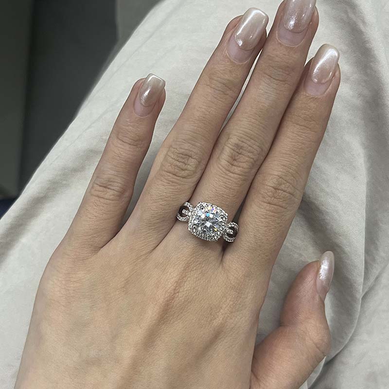Jeulia Round Halo Engagement Ring with Hollowed Band