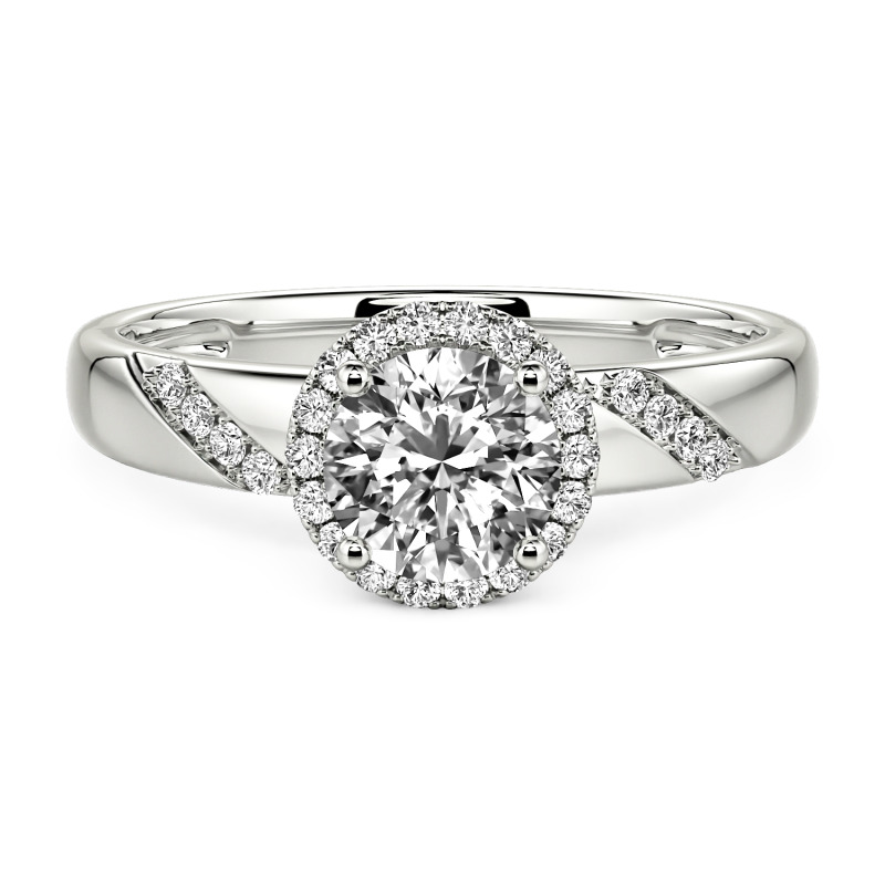 This Jeulia Twist Round Halo Lab-Grown Diamond Engagement Ring is crafted from precious metals such as 10K/14K/18K gold or platinum, masterfully blending the timeless brilliance of a classic round center stone with a dynamic modern design. The central stone is tenderly embraced by a dazzling halo of pave-set diamonds, reminiscent of stars orbiting the moon. Breaking from tradition, the shank features dynamic diagonal twists adorned with pave diamonds, creating a swirling band of light reminiscent of stellar orbits. This design infuses the fingertip with an elegant, vibrant rhythm. The overall design embodies the solemn promise of a classic solitaire ring while showcasing extraordinary artistic flair through its unique twisted halo. Whether sealing vows in pivotal moments or accompanying every sparkling instant of daily life, this lab diamond halo engagement ring stands as a radiant testament to enduring devotion.