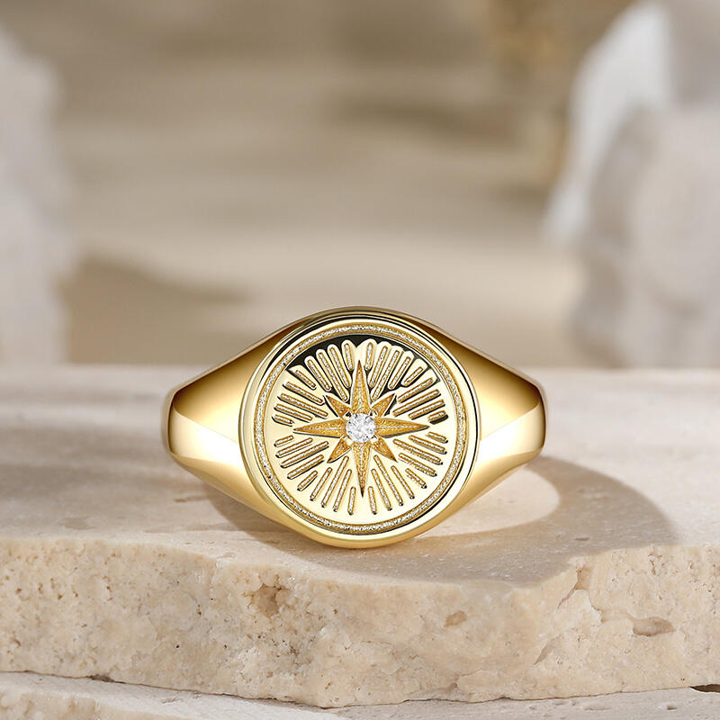 Ishtar is heavily associated with the planet Venus and the sacred feminin. Her primary element is the star, a representation of the brightest planet in the night sky. This ring incorporates stellar elements into an artful piece of jewelry. It also features a white stone, which is regarded as the stone of Venus.