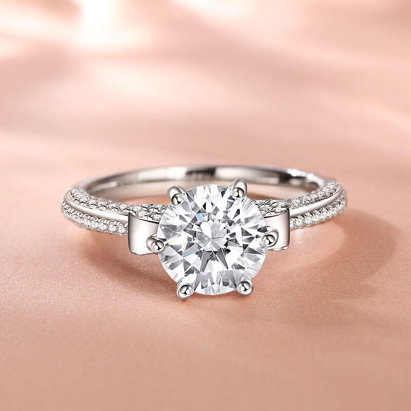 This unique bowknot engagement ring features a dazzling round-cut centerstone, perfectly nestled within an elegant bowknot-shaped band. The graceful curves of the bow symbolize the beautiful way your lives are intertwined, while the sparkling stone represents the brilliance of your love. Crafted with meticulous attention to detail, this custom Solitaire engagement ring offers a perfect blend of romance and sophistication. Its playful yet elegant design makes it ideal for the bride who appreciates both whimsy and timeless beauty. Say "i do" to forever with this charming and distinctive engagement ring that's sure to captivate hearts and turn heads.