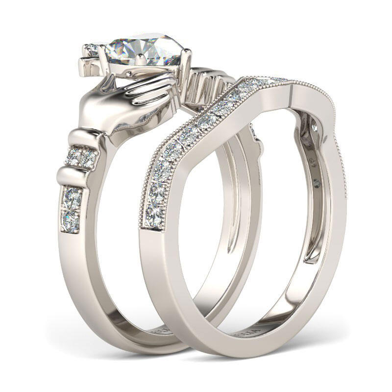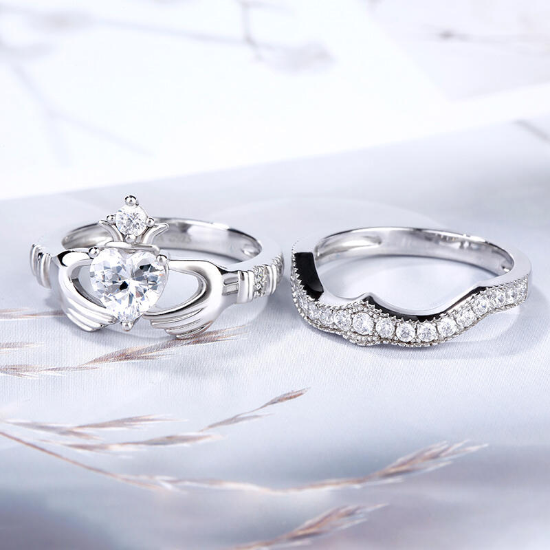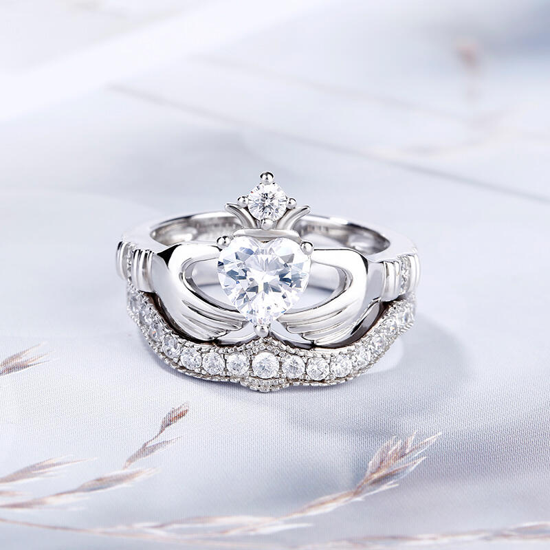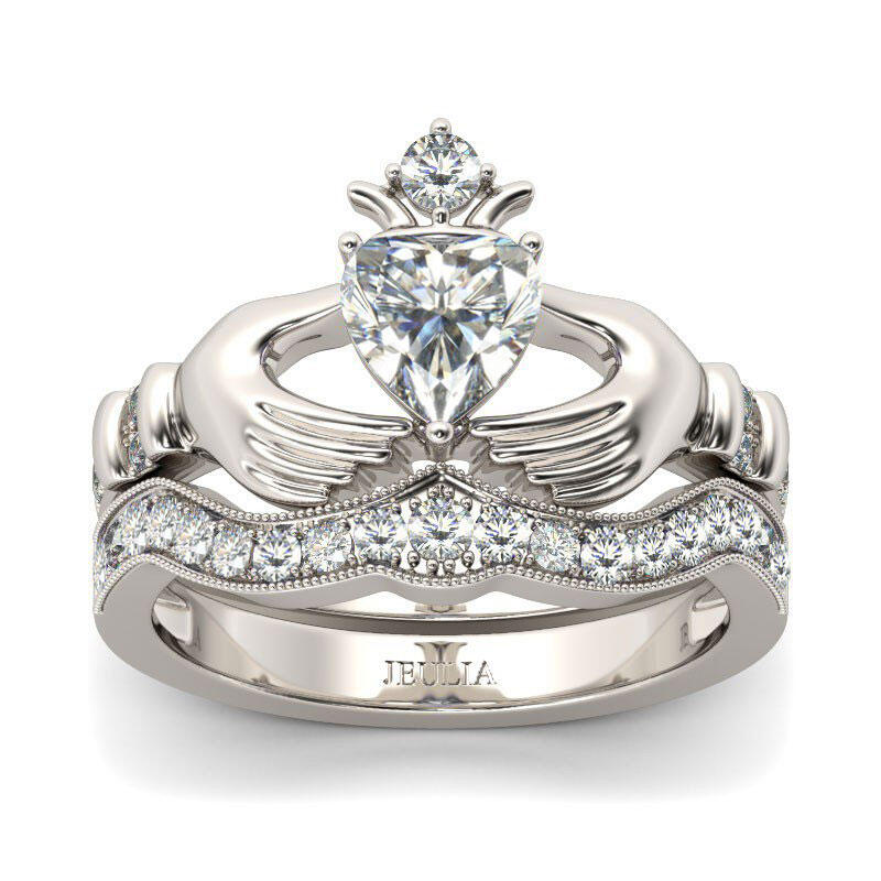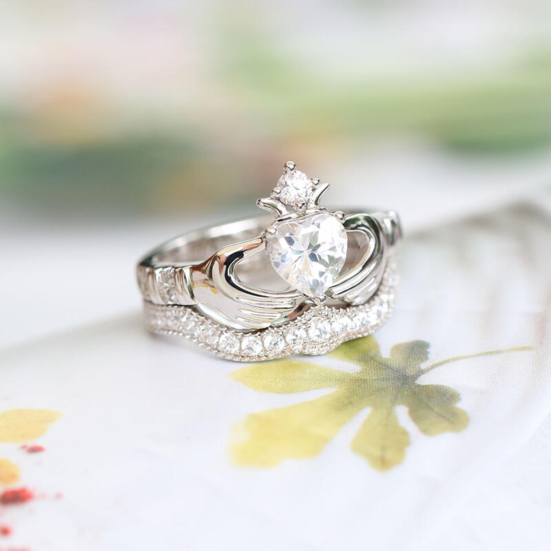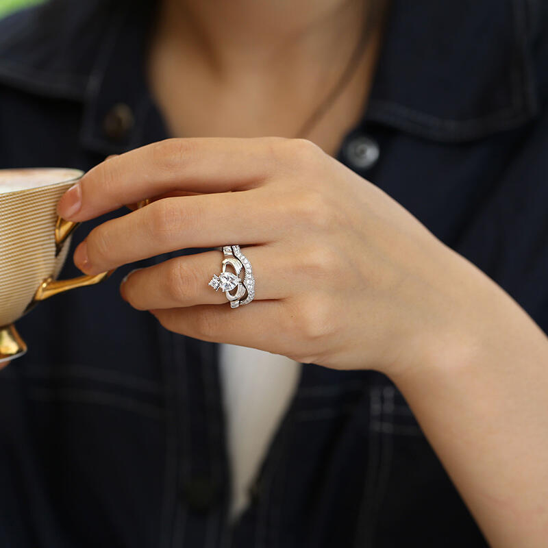 Jeulia Simple Crown Claddagh Sterling Silver Ring Set