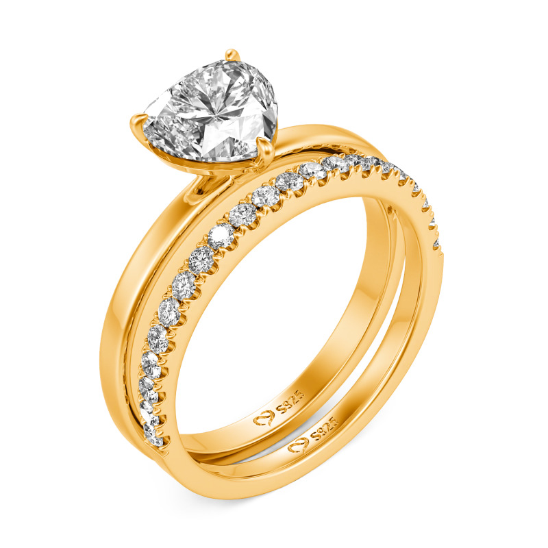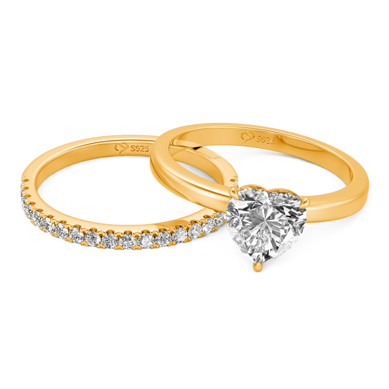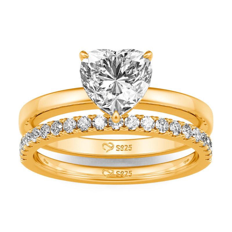 Jeulia Simple Custom Heart Engagement Eternity Ring Set