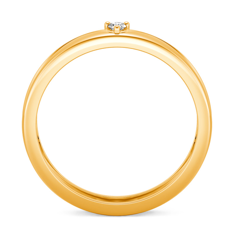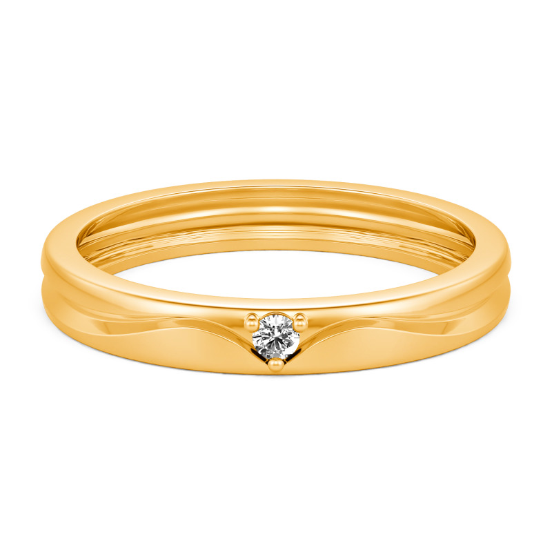 The centerpiece of this simple men's wedding band features a small, round-cut stone embraced by three prongs, cleverly forming a subtle heart shape that symbolizes your enduring love. Flanking this central motif, graceful wave-like patterns flow along the wedding band, representing the journey of life you'll navigate together. This men's wedding band strikes the ideal balance between simplicity and meaningful detail, making it the perfect choice for the modern man who appreciates understated elegance.