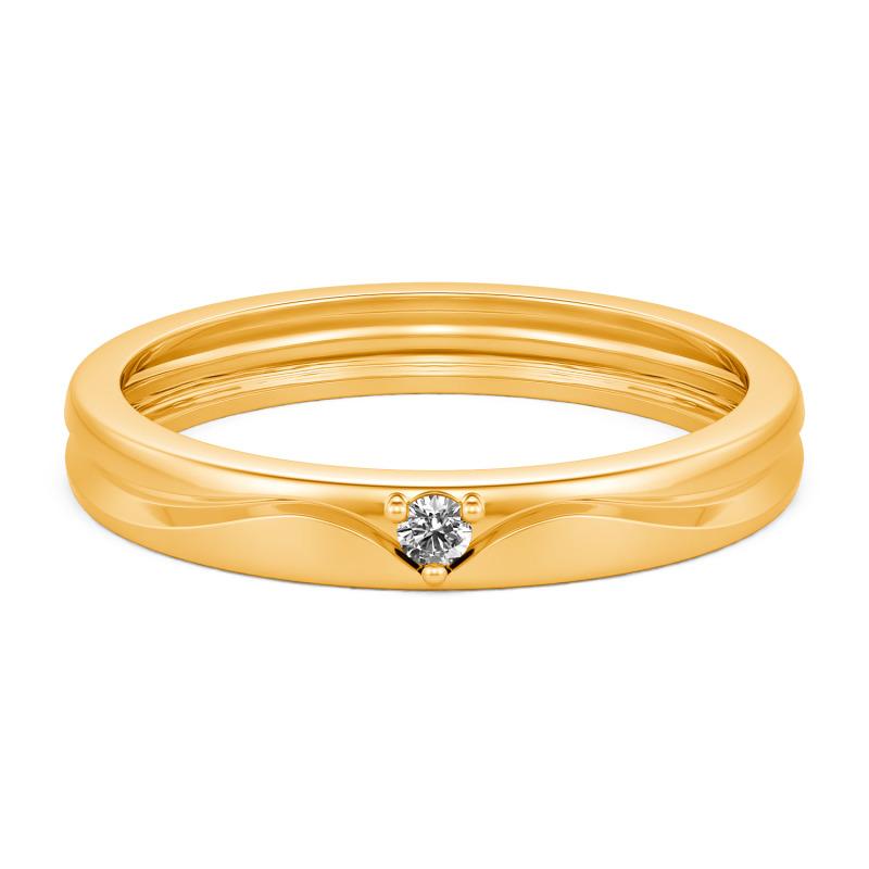 The centerpiece of this simple men's wedding band features a small, round-cut stone embraced by three prongs, cleverly forming a subtle heart shape that symbolizes your enduring love. Flanking this central motif, graceful wave-like patterns flow along the wedding band, representing the journey of life you'll navigate together. This men's wedding band strikes the ideal balance between simplicity and meaningful detail, making it the perfect choice for the modern man who appreciates understated elegance.