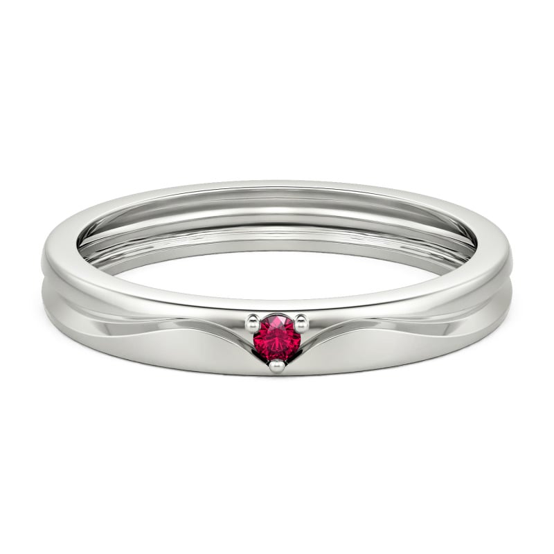 The centerpiece of this simple men's wedding band features a small, round-cut stone embraced by three prongs, cleverly forming a subtle heart shape that symbolizes your enduring love. Flanking this central motif, graceful wave-like patterns flow along the wedding band, representing the journey of life you'll navigate together. This men's wedding band strikes the ideal balance between simplicity and meaningful detail, making it the perfect choice for the modern man who appreciates understated elegance.