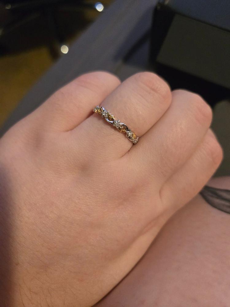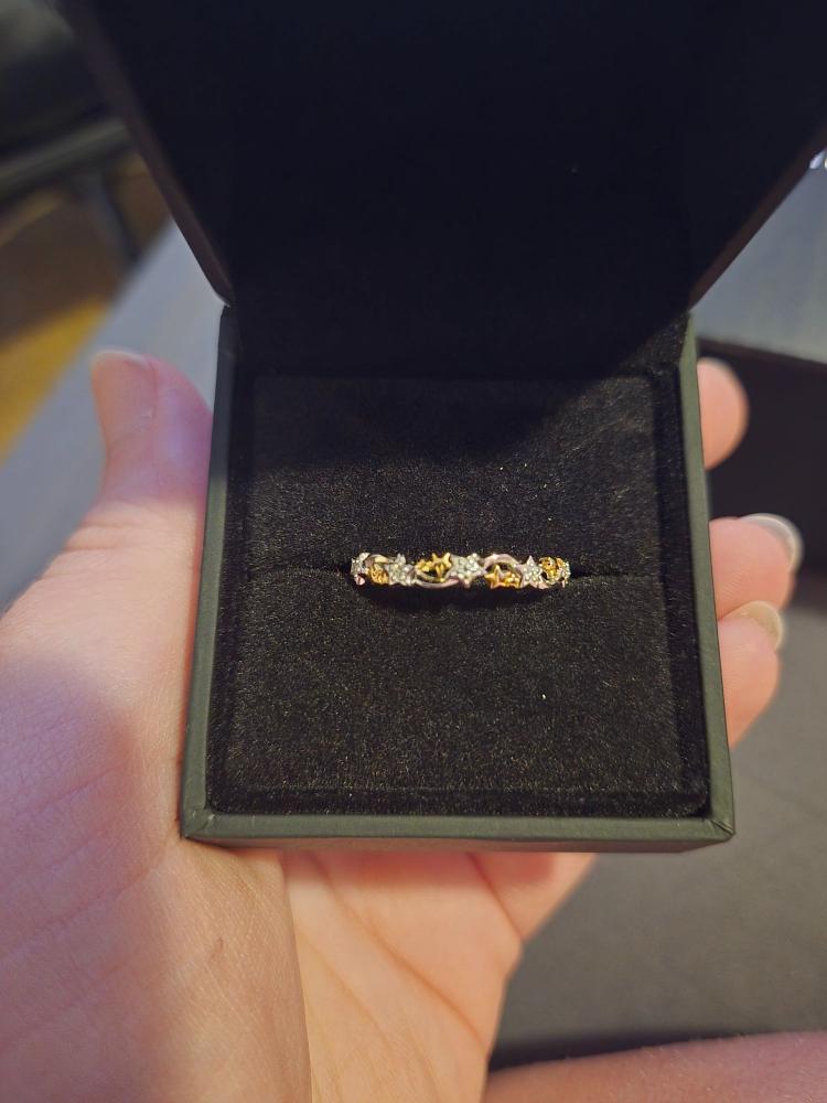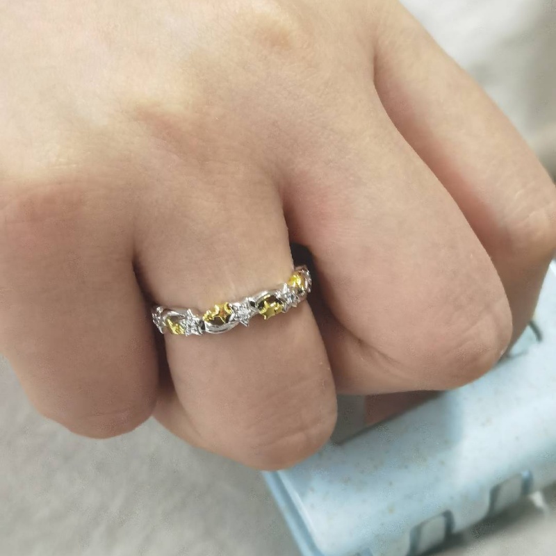 The Jeulia Simple Star Ring features matte silver stars floating against polished gold-plated negative space, creating constellations that shift with every turn of your hand. The dual-tone contrast needs no gemstones; its brilliance lives in the interplay of light and shadow. At 1.8mm thin, this two tone ring slips seamlessly between stacks or stands alone as quiet rebellion against ordinary.