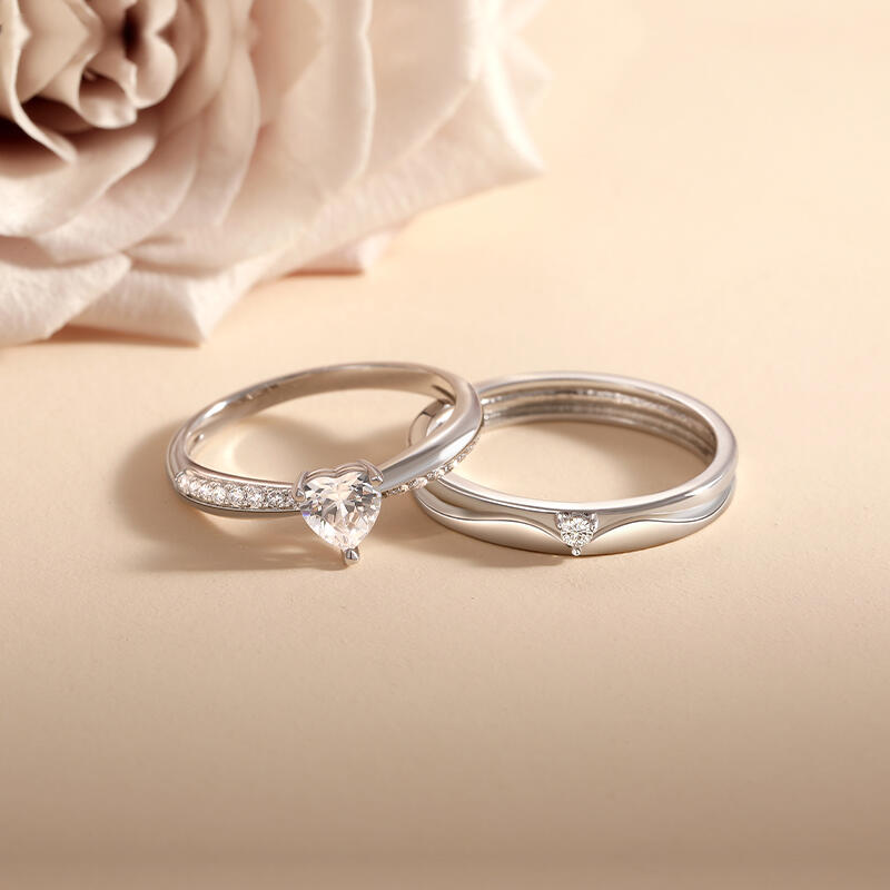 Jeulia Simple Heart Solitaire Custom Engagement Ring Eternity Band