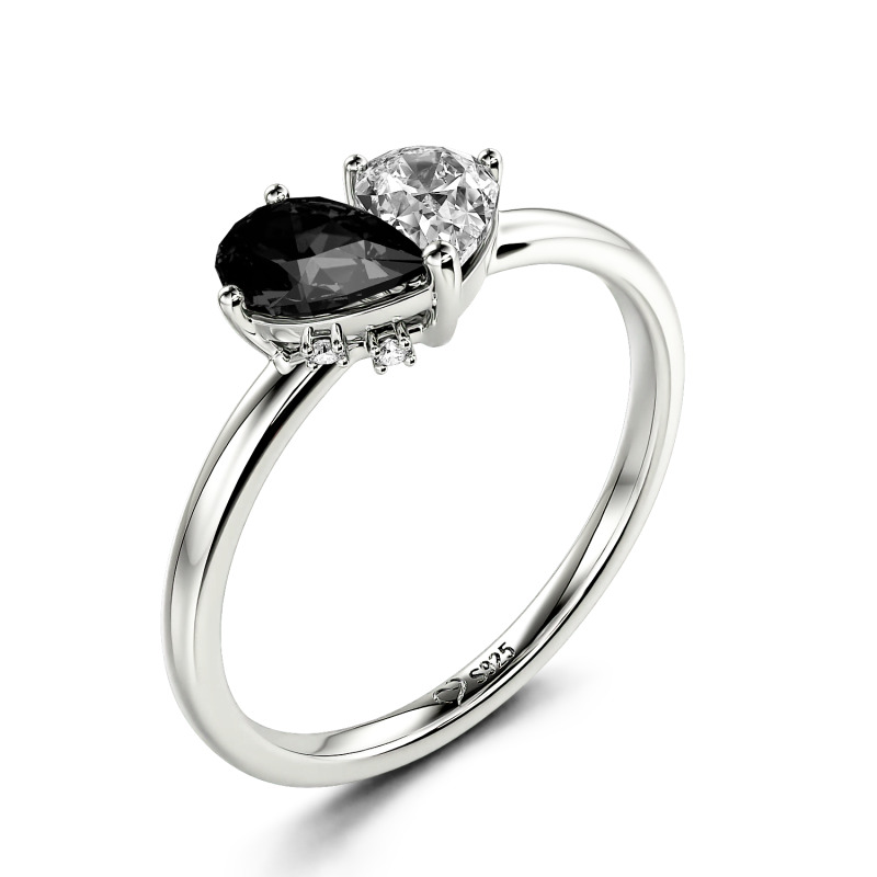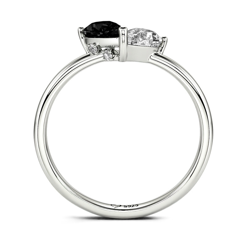 Two pear cut stones are arranged to form a heart at the center of the design. Two tiny stone accents at the base of the piece anchor it in place. They are set together to form this petite heart stacker. You can choose different-color stones for the center stone to make a unique look for the ring. Just design a piece of jewelry by yourself.