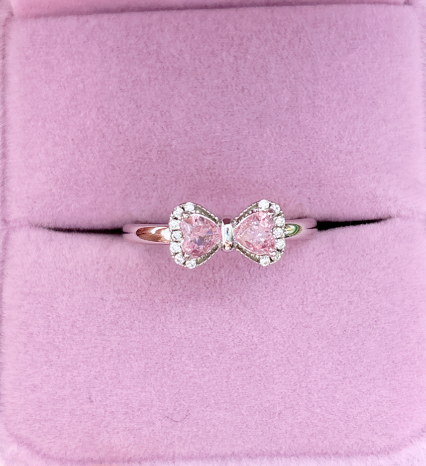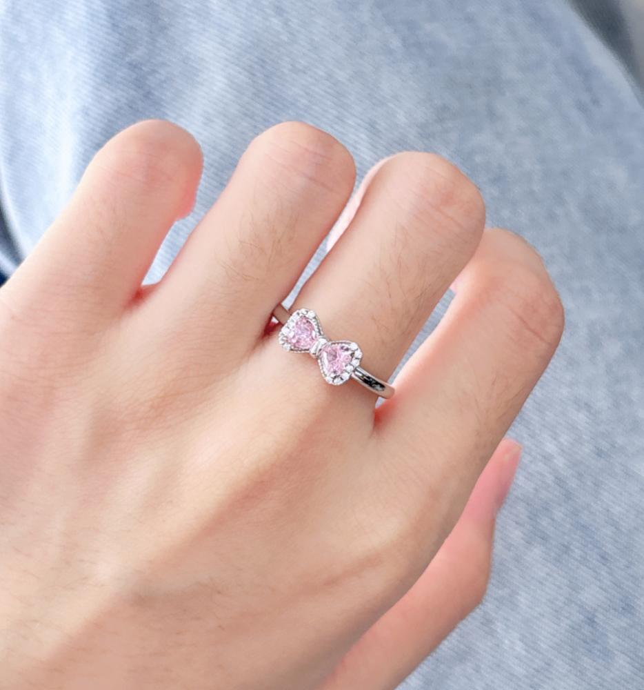 Jeulia Simple Pink Bow 2 Heart Promise Ring Sterling Silver