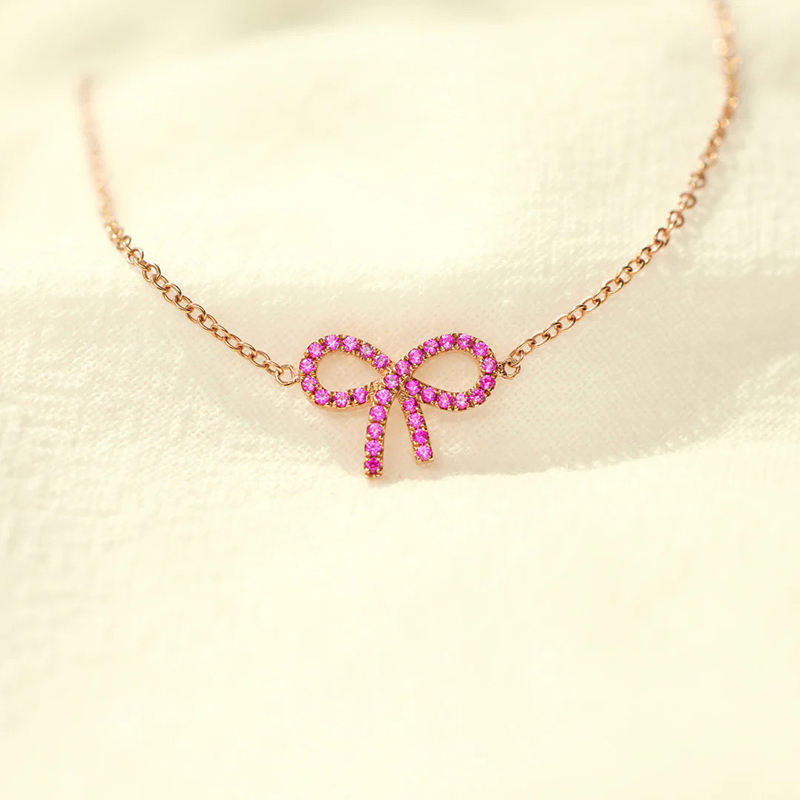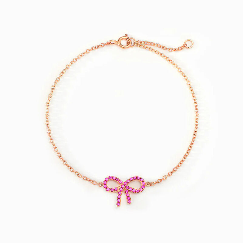 Jeulia Simple Pink Pave Bow Bracelet