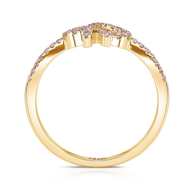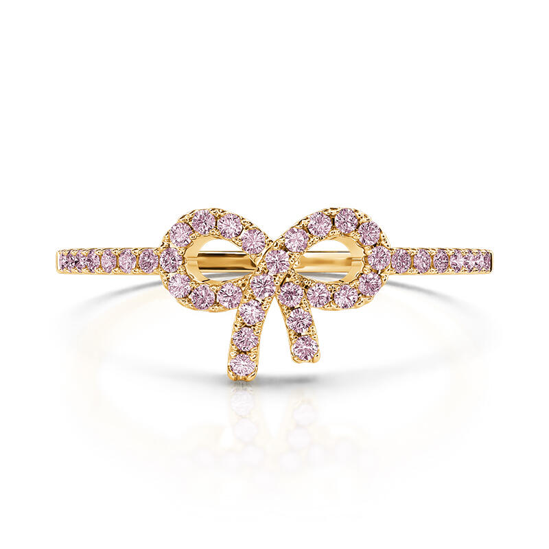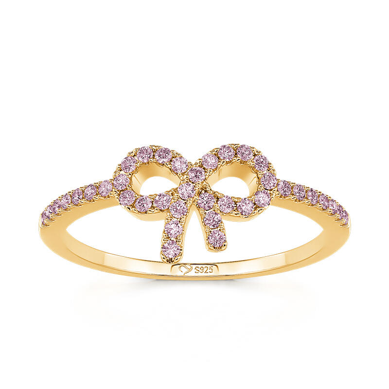 Jeulia Simple Pink Pave Bow Ring Sterling Silver Gold Tone