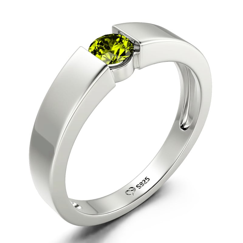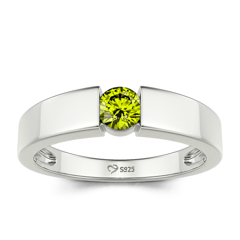 Jeulia Simple Round Cut Men Engagement Ring Sterling Silver
