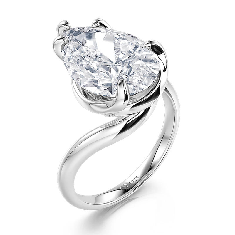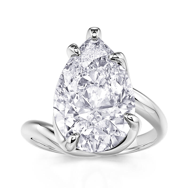 A stunning simple pear cut engagement ring, a masterpiece of shimmering silver metal that radiates an aura of love and commitment. At its heart, a magnificent pear cut gemstone stands tall, a pristine white symbol of pure affection, gleaming like a beacon of joy, ready to illuminate the path of a lifelong union. Crafted with meticulous attention to detail. This twist solitaire engagement ring effortlessly blends classic and contemporary elements, making it a versatile accessory for any occasion.
