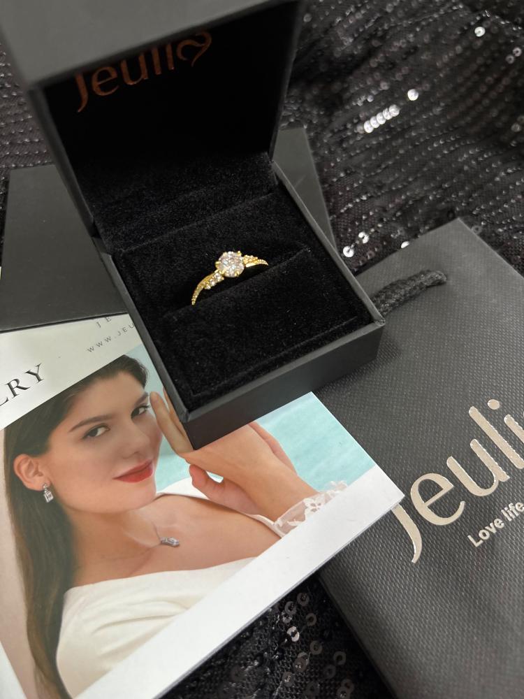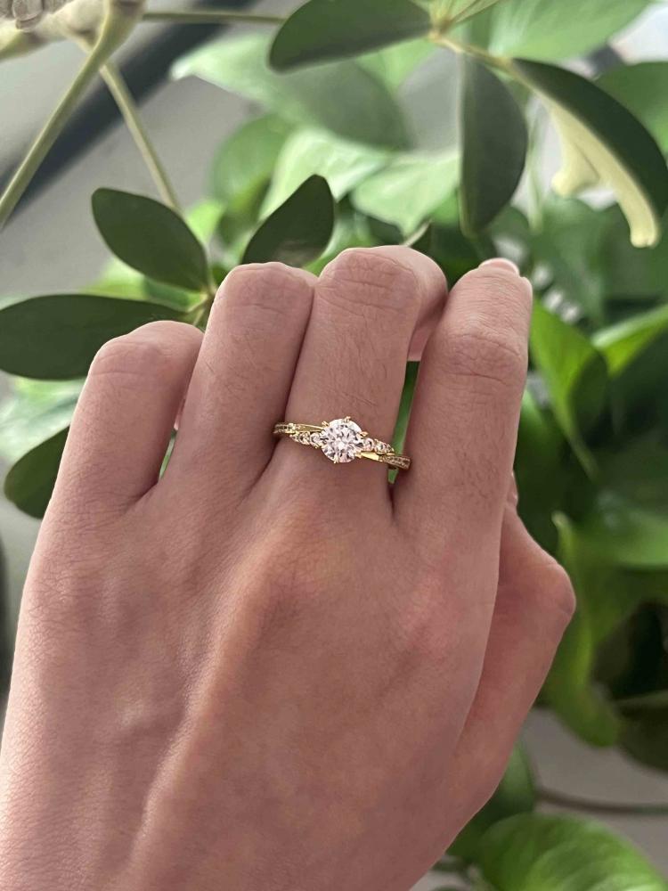 Jeulia Simple Twist Round Cut Gold Promise Ring Sterling Silver