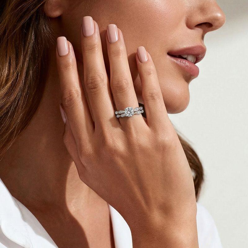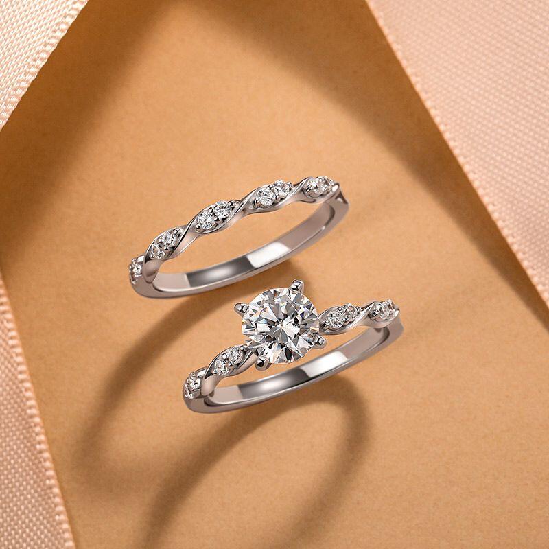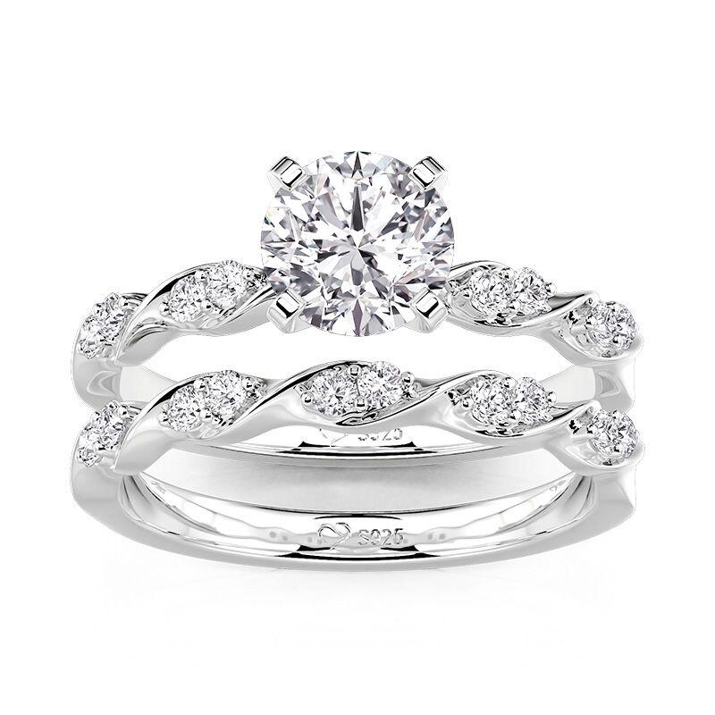 Jeulia Simple Twisted Round Cut Bridal Set 2PCS