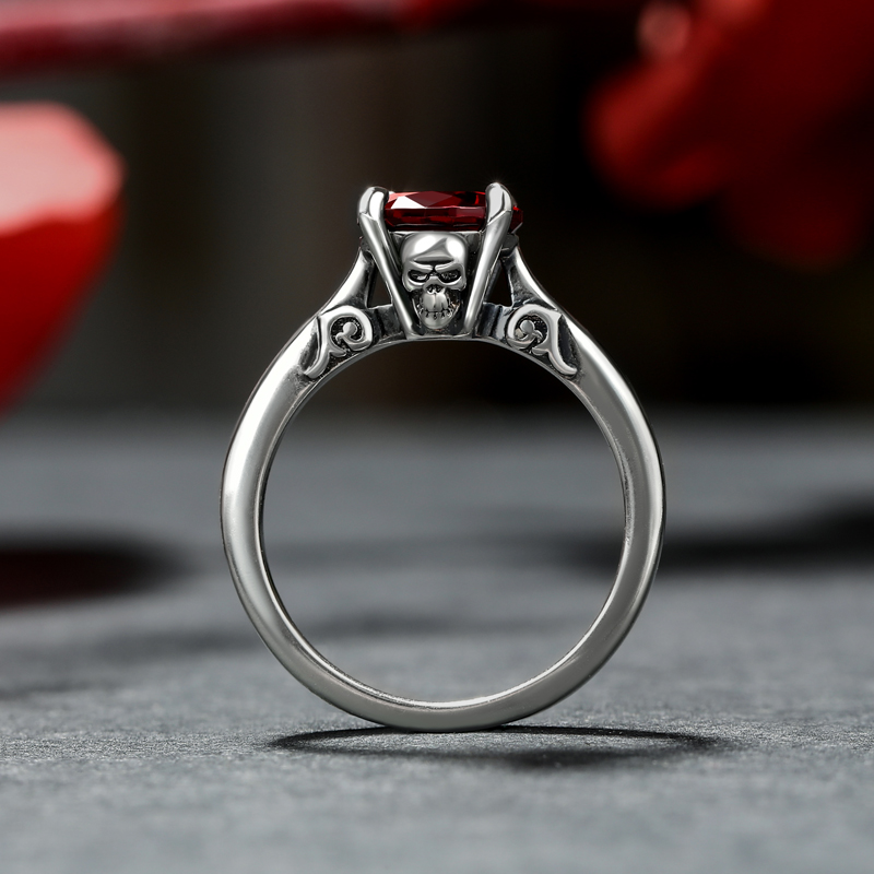 Jeulia Skull Design Round Cut Sterling Silver Ring
