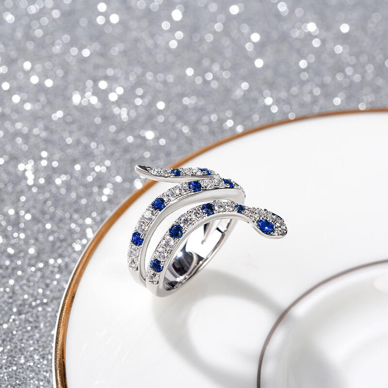 The snake is one of the oldest and most widespread mythological symbols, a symbol of transformation, rebirth and immortality. Crafted in sterling silver, the ring is set with glittering white stones as skin and decorated with blue stones to add its spark. If you are interested in snake jewelry, just add this ring to your jewelrybox.