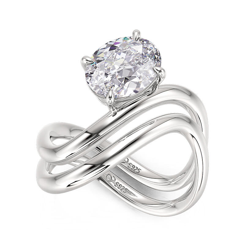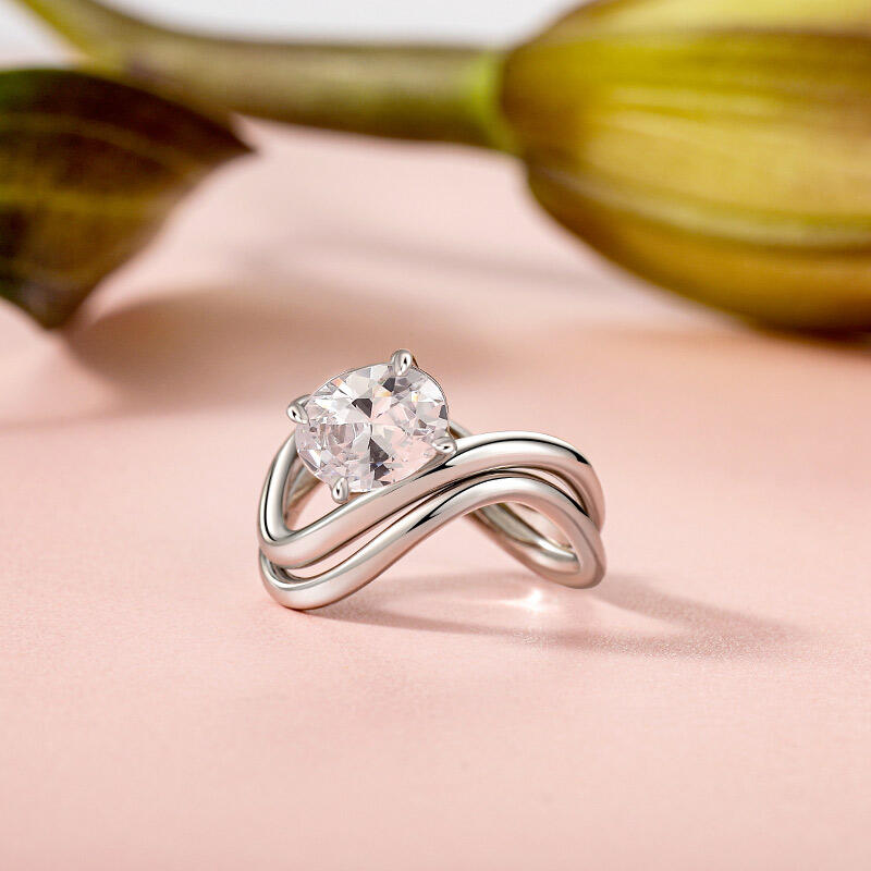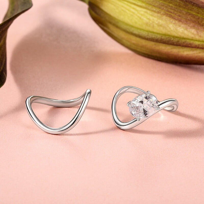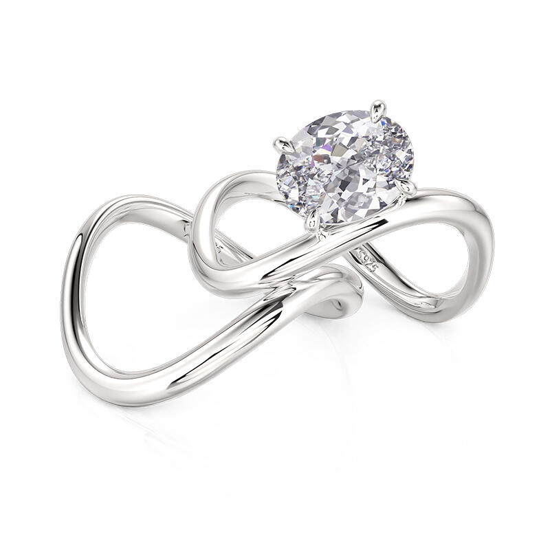 Tradition and modern beauty perfectly combine in this oval-cut stone solitaire infinity engagement ring set. The curved bands form the shape of the infinity symbol, symbolizing eternal love and unity. The focal point of this infinity engagement ring set is a dazzling oval-cut gemstone, reflecting light and grace with every movement. Make a statement with this unique and oval cut engagement ring set that is sure to turn heads and capture hearts.