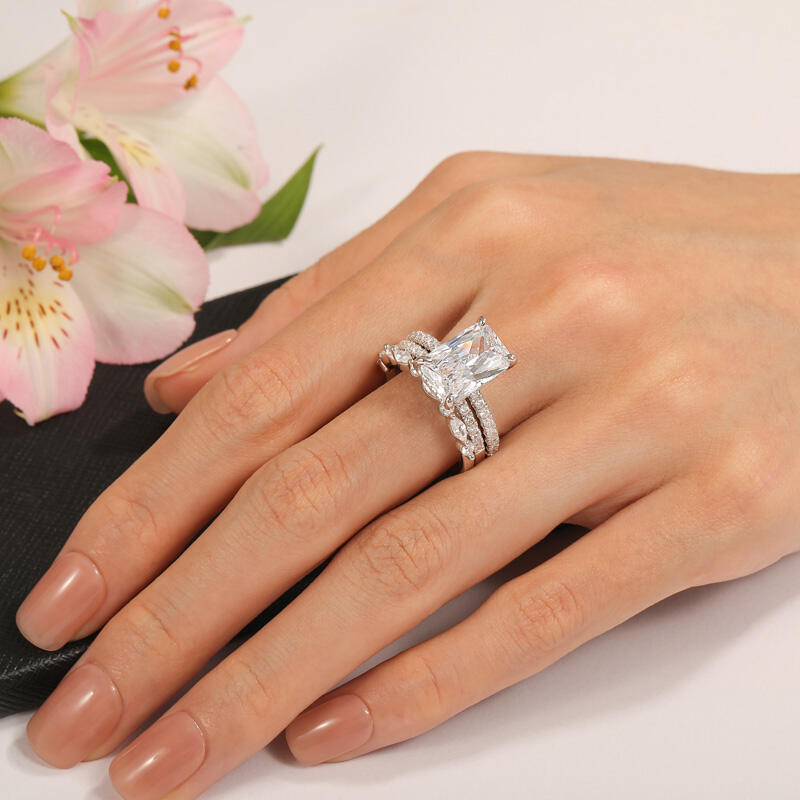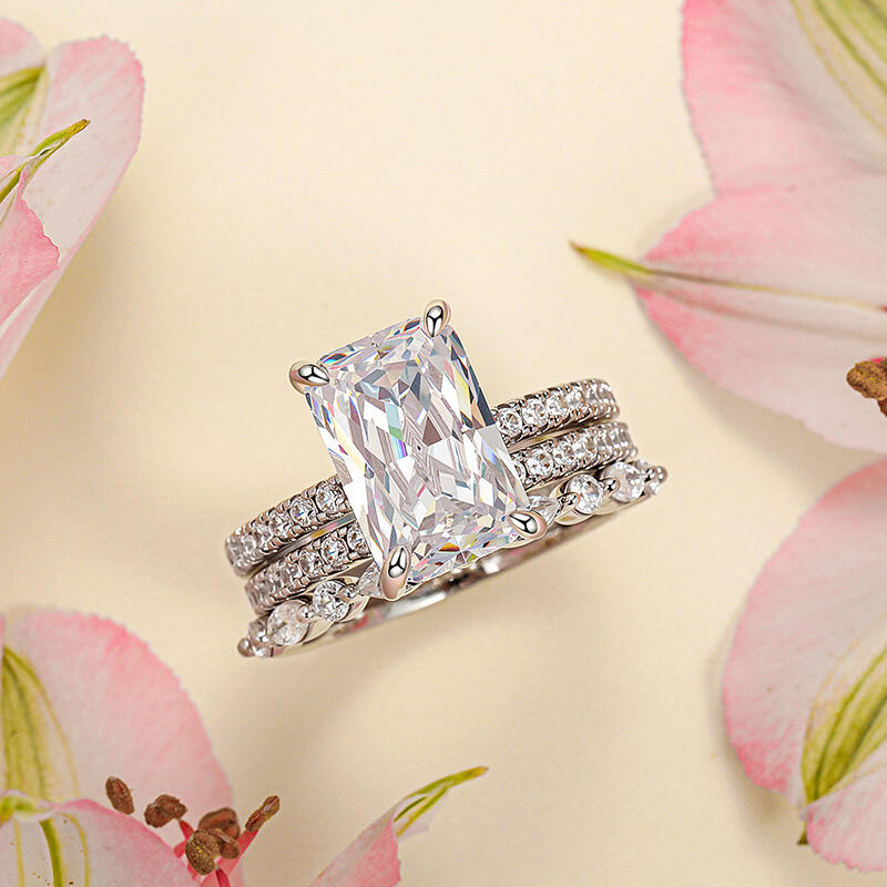 Jeulia Solitaire Radiant Cut Engagement Ring Set 3PCS Sterling Silver