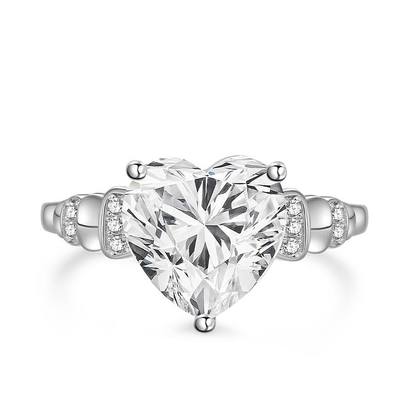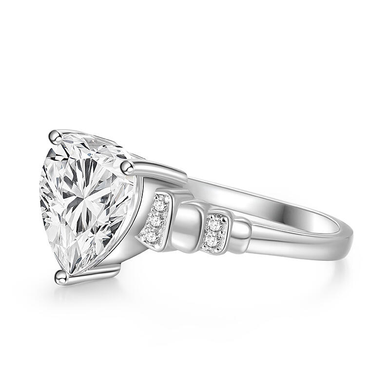 Crafted from sterling silver, this heart knot promise ring exudes elegance and grace. The main stone is a fine cut, sparkling heart shaped stone set in a delicate silver band. The arms of the knot promise ring feature a chic knot design, reflecting both traditional craftsmanship and unique modern aesthetics. The small round cut diamonds surrounding the promise ring further enhance the overall splendor of the piece. Wear this sparkling heart knot promise ring with confidence and charisma, and live life to the fullest.