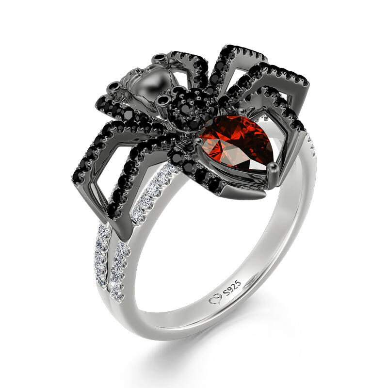 Jeulia Spider Skull Biker Black Tone Pear Cut Sterling Silver Ring