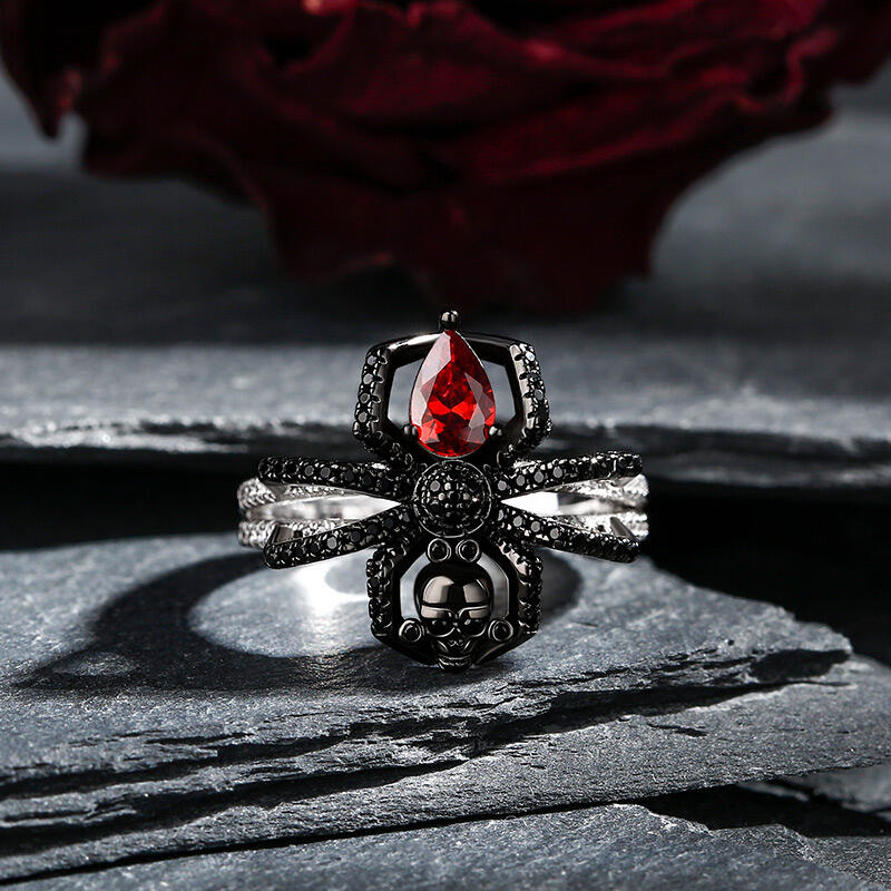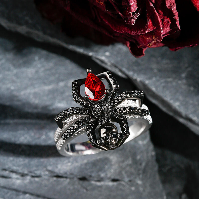 Do you want the most eye-catching piece of halloween jewelry that is never out of date? This spider skull ring must be your good choice. It is designed to be a creepy crawly spider holding a skull on its top. It is decorated with a red stone at its abdomen and several tiny, shiny white stones at its shank. The skull symbolizes the natural cycle of life and death. This ring is a statement piece that’s incredibly comfortable to wear.