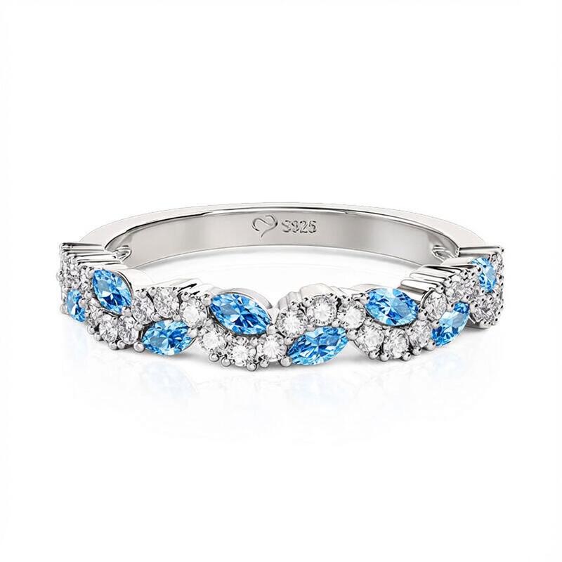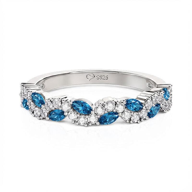 A marvelous story blossoms at your fingertips when blue and white intertwine. The unique design of this women's eternity band is stackable, giving you the freedom to mix and match for multiple looks. The color of the horse-eye stone can be customized to create a unique sparkle for you. Every time you gently turn your finger, you can feel the infinite tenderness between the blue and white colors, as if playing a symphony of the heart.