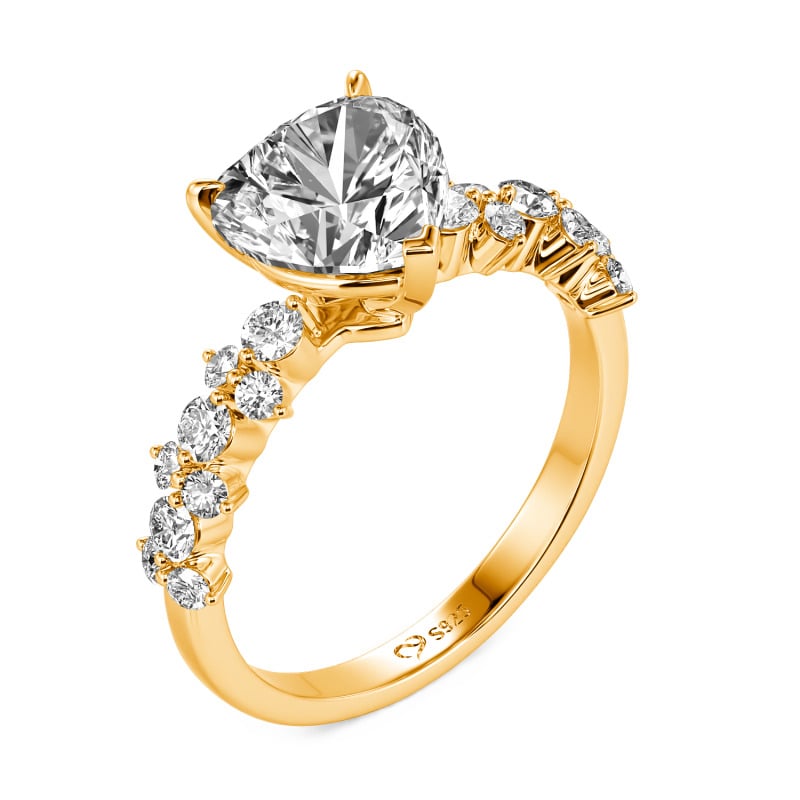 With the main stone in the shape of a love heart as the centerpiece, this star trails custom heart promise ring conveys strong romantic feelings, perfectly symbolizing love and commitment. The small round stones on the side are skillfully intertwined to create a dynamic design like star trails, like twinkling stars in the starry sky, adding a touch of dream and fantasy to the heart ring. Not only is this heart promise ring unique in its design, but it also offers customization options for stone color and metal color, allowing each wearer to choose the match that best suits their style and personality. Whether as a proposal ring or a memorial gift, this promise ring will be a precious record that makes every moment count.