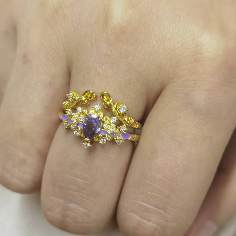 The Jeulia Nature-Inspired Purple Ring Set features a pear-cut amethyst zircon suspended within a galaxy of white zircon "stars," their arrangement mimicking dewdrops on gilded vines. Faint violet enamel leaves peek through the constellation—no solid forms, just translucent whispers of wisteria. Stack the bands to layer cosmic gardens, or wear solo as a pocket universe where botany and starlight share roots.