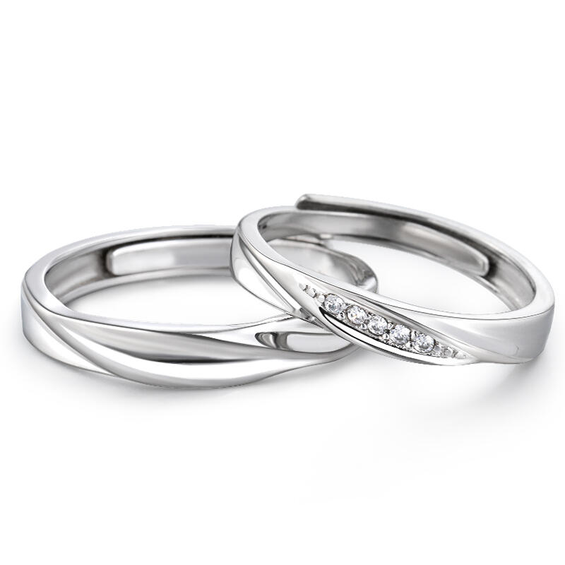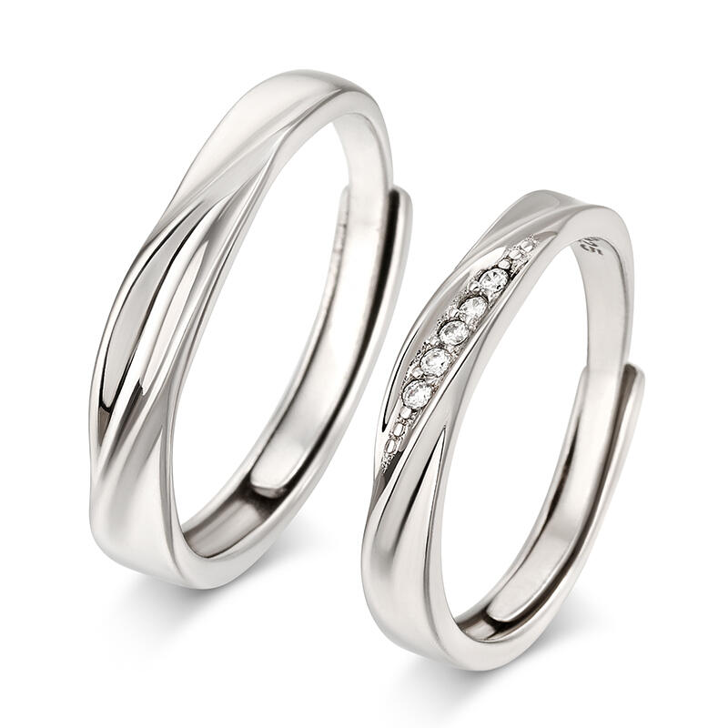 Jeulia Stylish Adjustable Sterling Silver Couple Rings