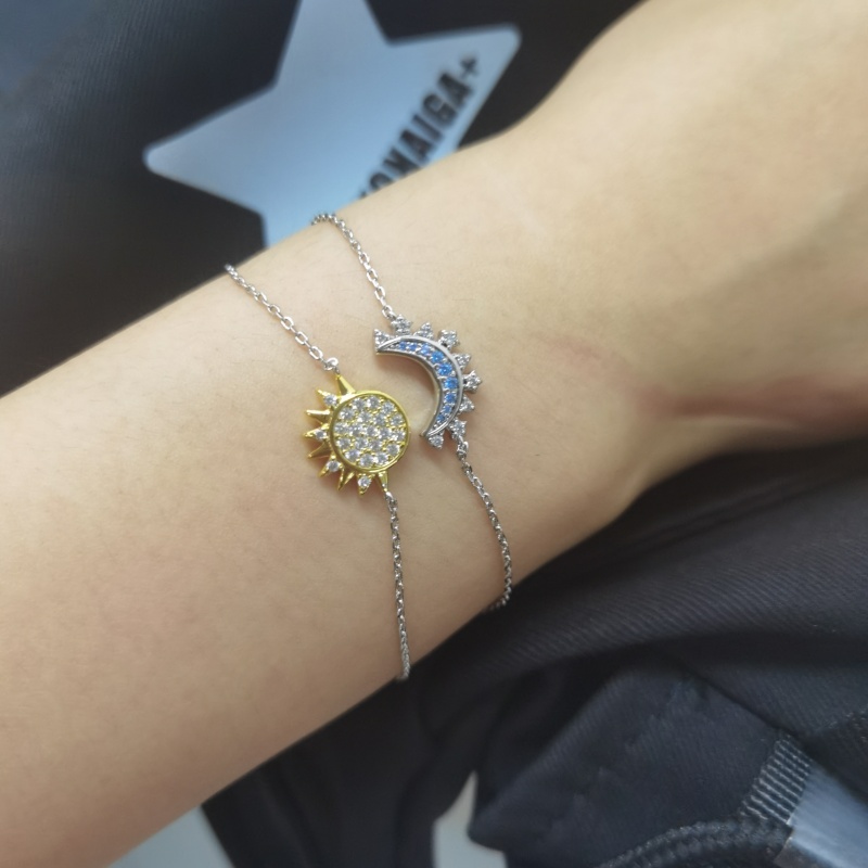 Jeulia Sun and Moon Stacked Bracelets feature a sunburst chain of hammered gold links stacked with a fluid silver strand dotted with crescent charms. The sun’s rays are filed to catch light sharply; the moons are brushed to glow diffusely—wear them tight for a celestial eclipse effect, or let them dangle loosely, creating a soft clink like distant orbiting bodies. For the dreamers who need both daylight’s clarity and moonlight’s mystery.