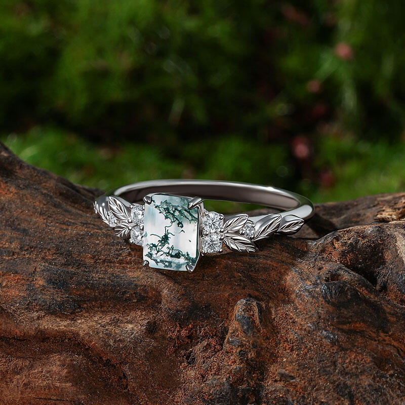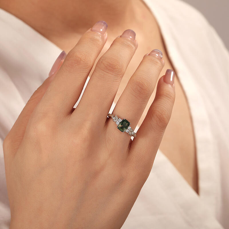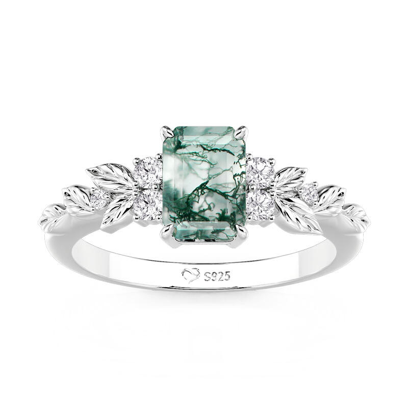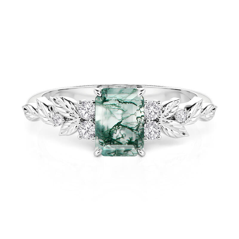 Jeulia Symmetry Design Leaf Moss Agate Engagement Ring