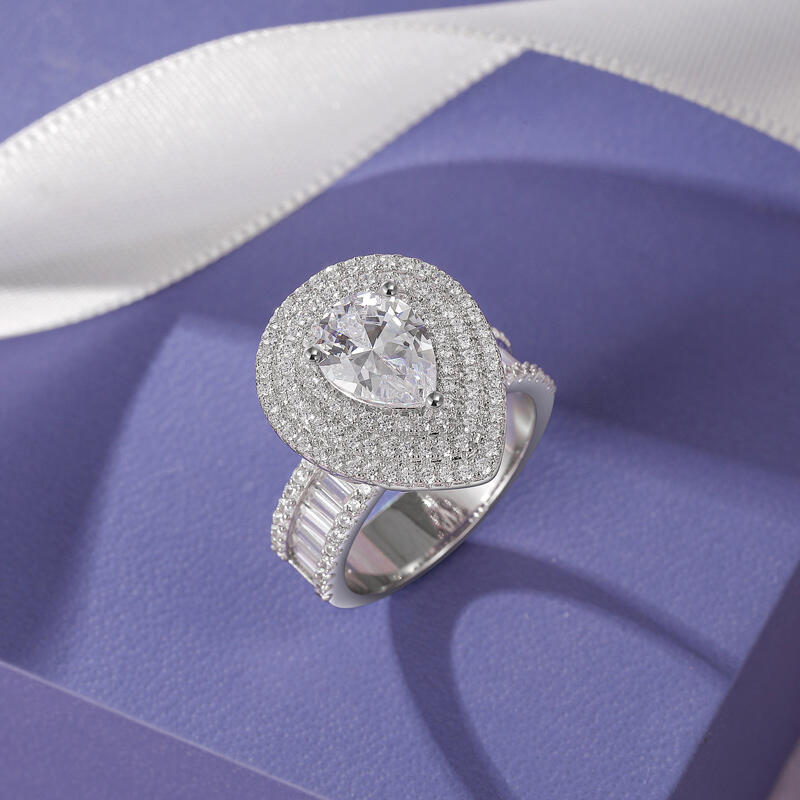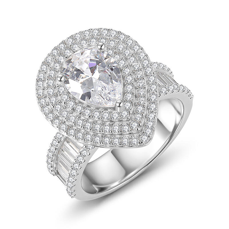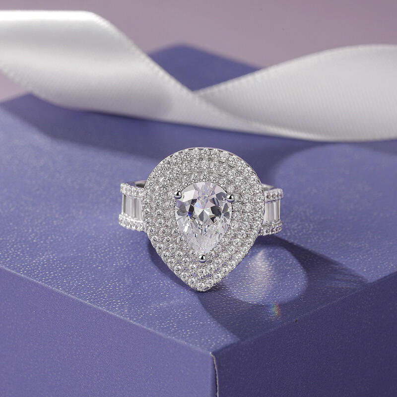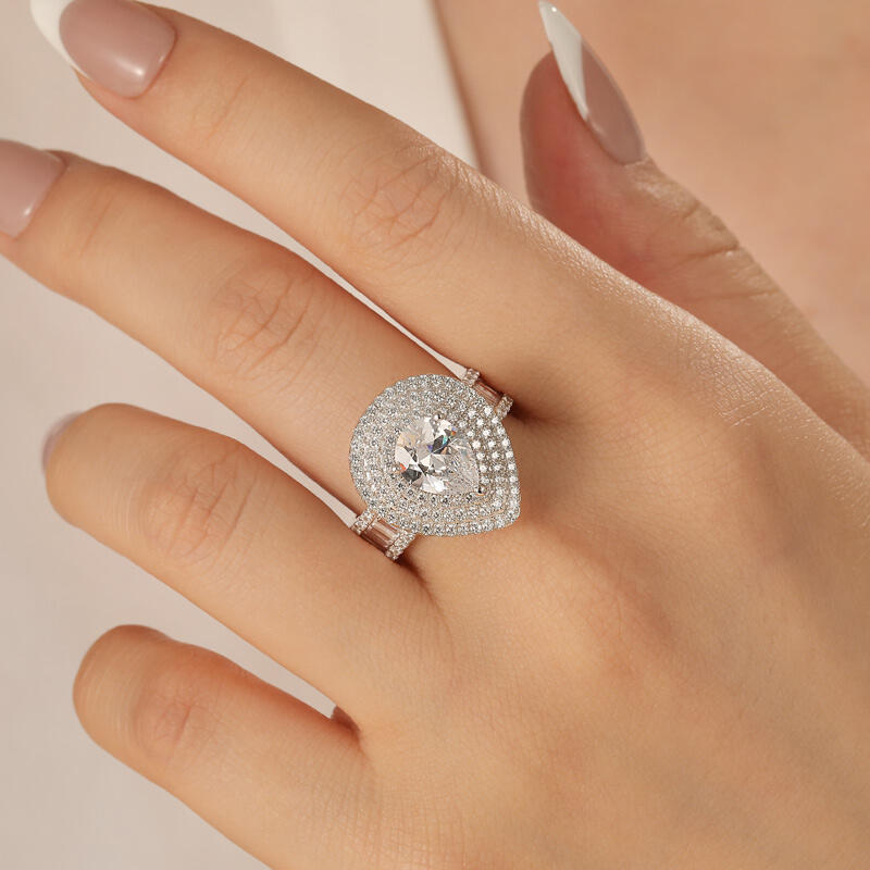 Jeulia Three Halo Pear Cut Radiance Eternity Band Engagement Ring