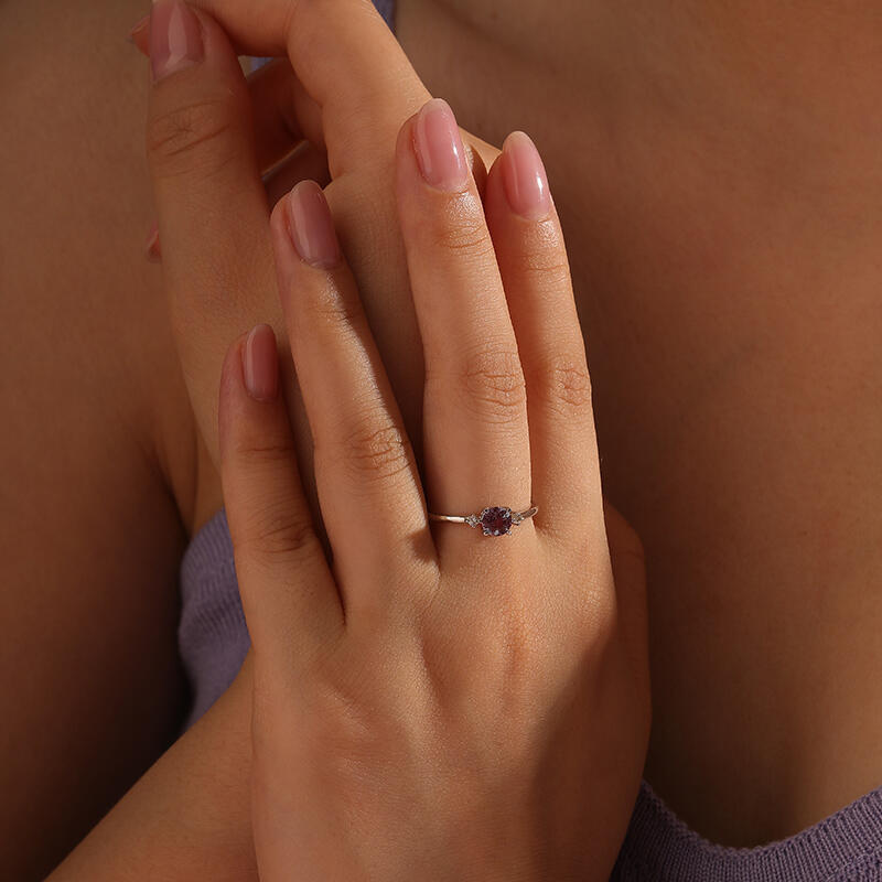 Jeulia Three Stone Alexandrite Round Cut Sterling Silver Ring