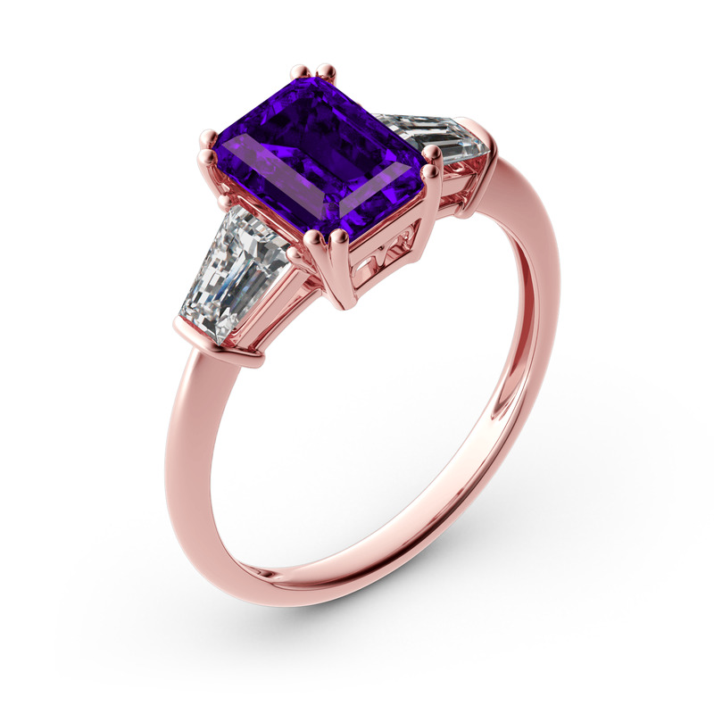 "I love you" comes in many forms. Say it your way with this beautiful engagement ring. It showcases a shimmering emerald cut center stone flanked by two tapered baguette stones. Graceful and glamorous, this ring delivers eye-catching style.