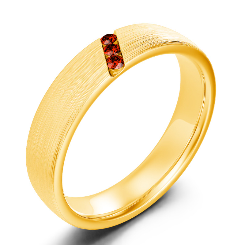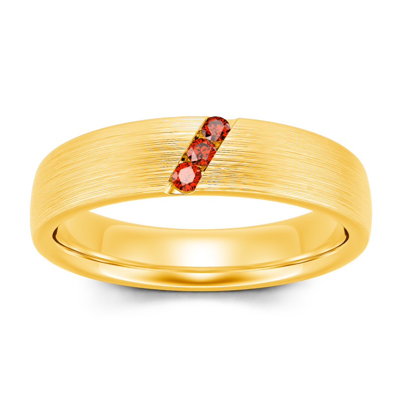 He'll appreciate the sleek design of this moissanite wedding band. A striking diagonal line of stones creates a unique, eye-catching design in this matte-brushed ring. The inside of the shank is rounded for comfortable wear. Buffed to a brilliant luster, this comfort-fit wedding band seals your vows in style.