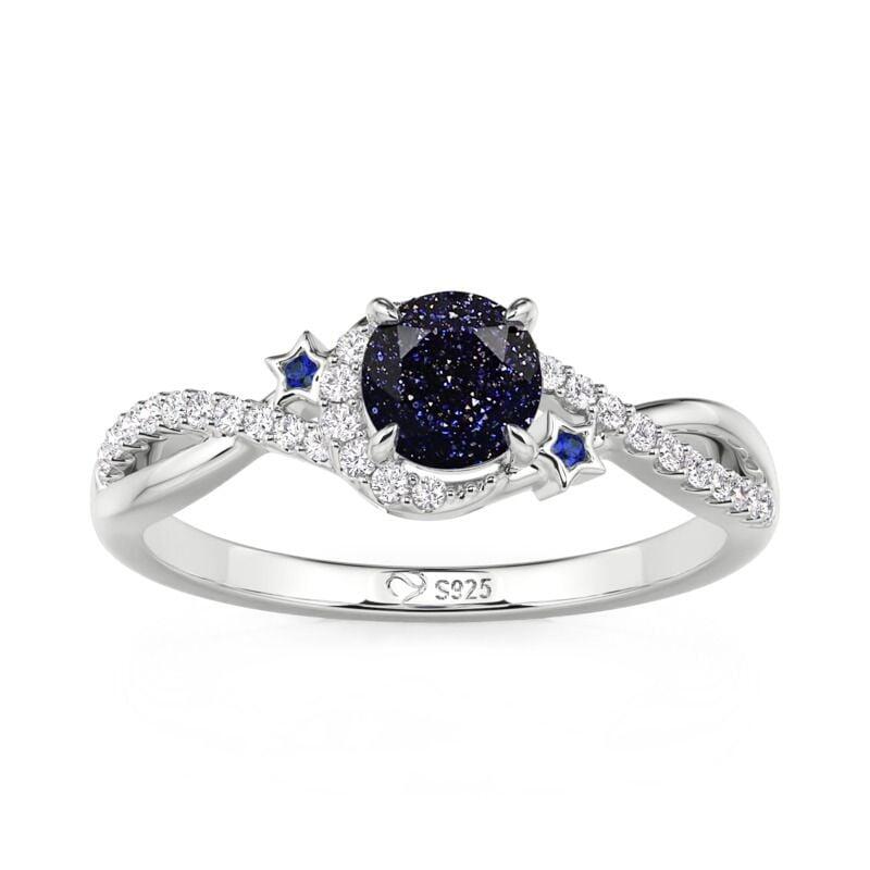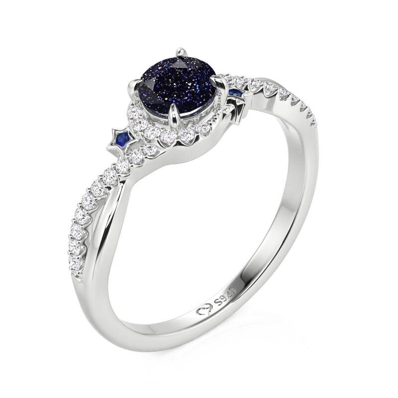 Jeulia Twist Blue Sandstone Ring with Star Moon Motifs