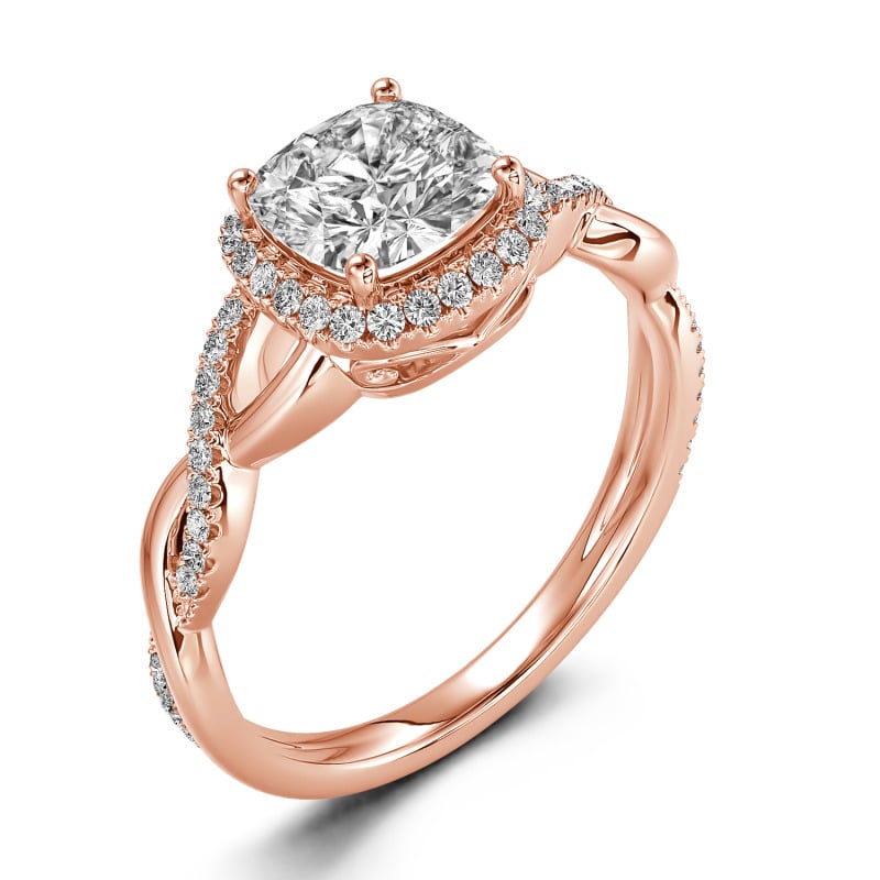 Jeulia Twist Halo Cushion Cut Sterling Silver Ring