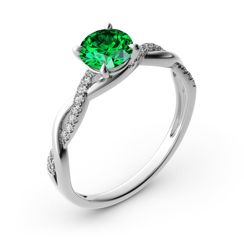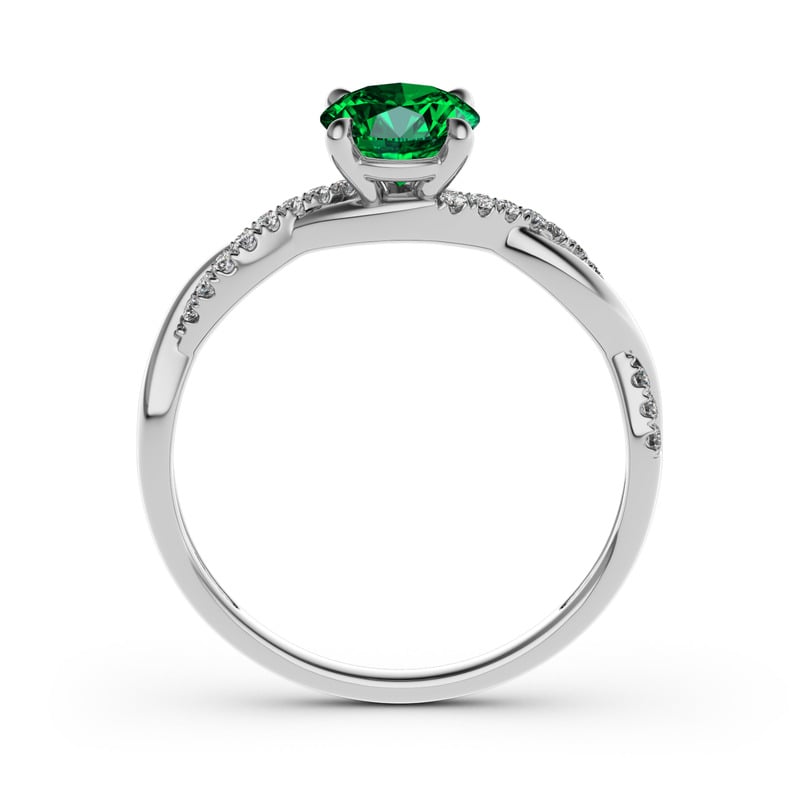 With a graceful line and a sparkling shine, this engagement ring will dazzle and delight her. It features a glistening round cut center stone and shimmering strand of paved stones entwined with a lustrous ribbon of precious metal. Captivating with sparkling stones and a bright polished shine, this ring proclaims your love on your special day.
