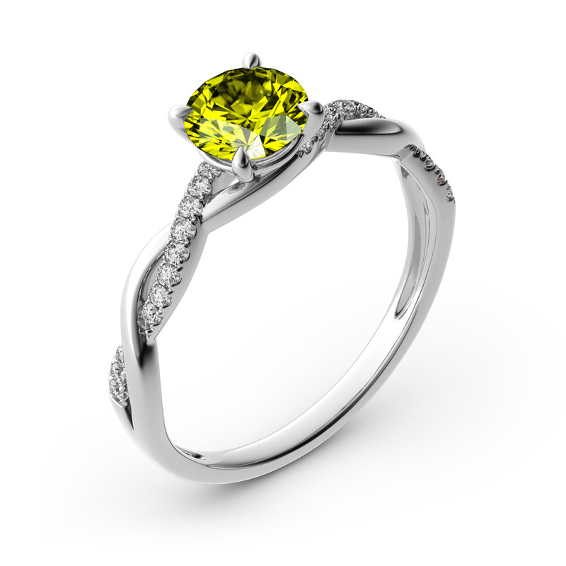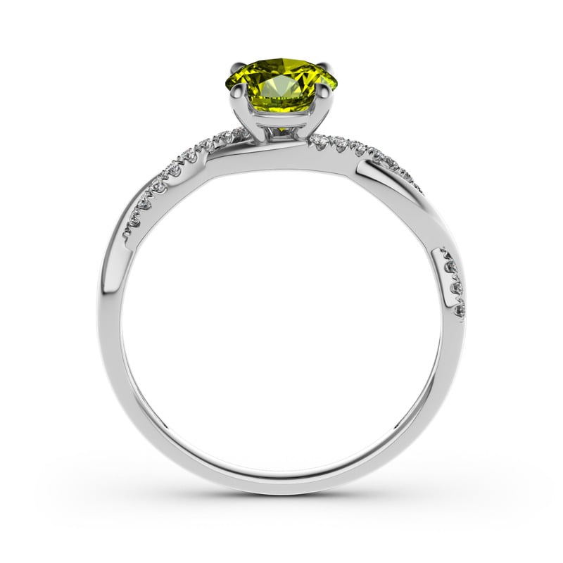 With a graceful line and a sparkling shine, this engagement ring will dazzle and delight her. It features a glistening round cut center stone and shimmering strand of paved stones entwined with a lustrous ribbon of precious metal. Captivating with sparkling stones and a bright polished shine, this ring proclaims your love on your special day.