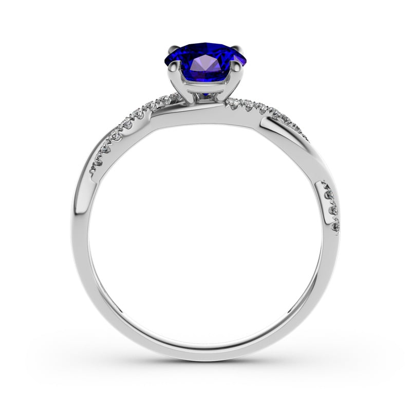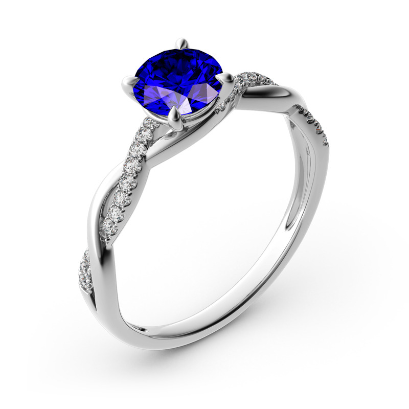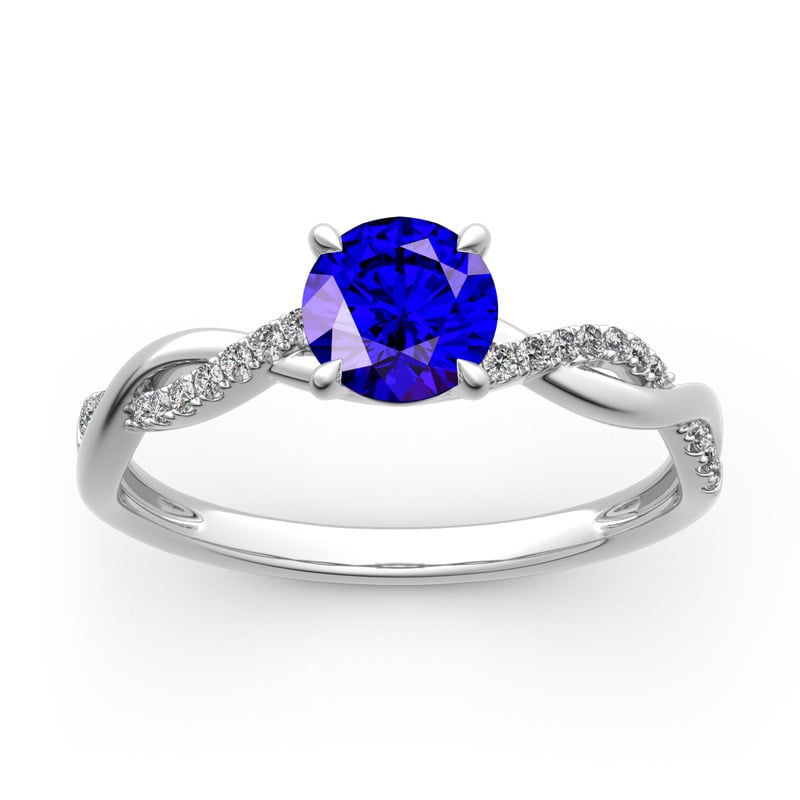 With a graceful line and a sparkling shine, this engagement ring will dazzle and delight her. It features a glistening round cut center stone and shimmering strand of paved stones entwined with a lustrous ribbon of precious metal. Captivating with sparkling stones and a bright polished shine, this ring proclaims your love on your special day.