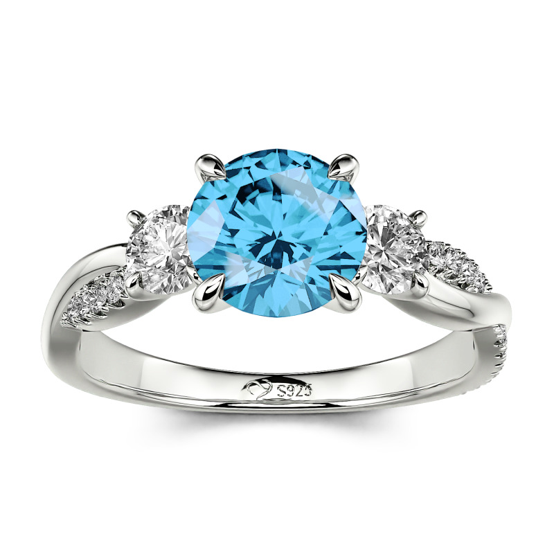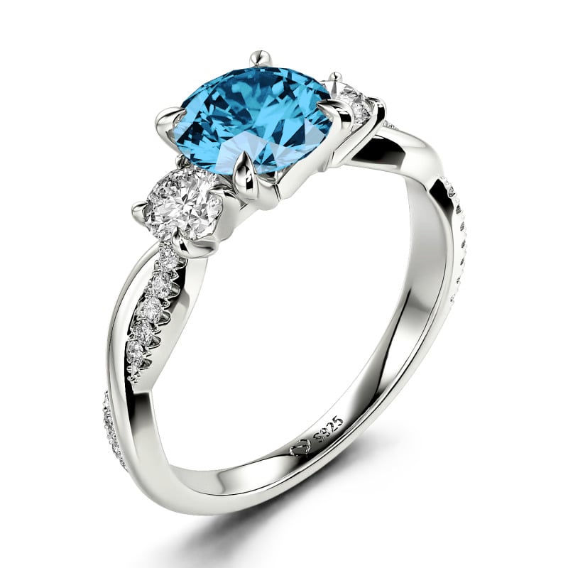 Jeulia Twist Three Stone Engagement Ring Sterling Silver Round Cut