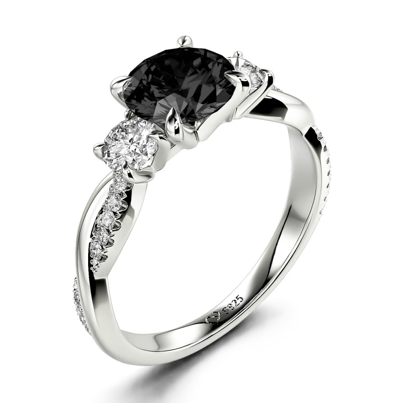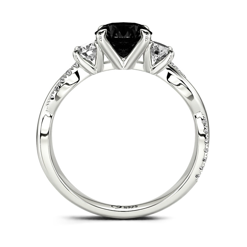 Jeulia Twist Three Stone Engagement Ring Sterling Silver Round Cut
