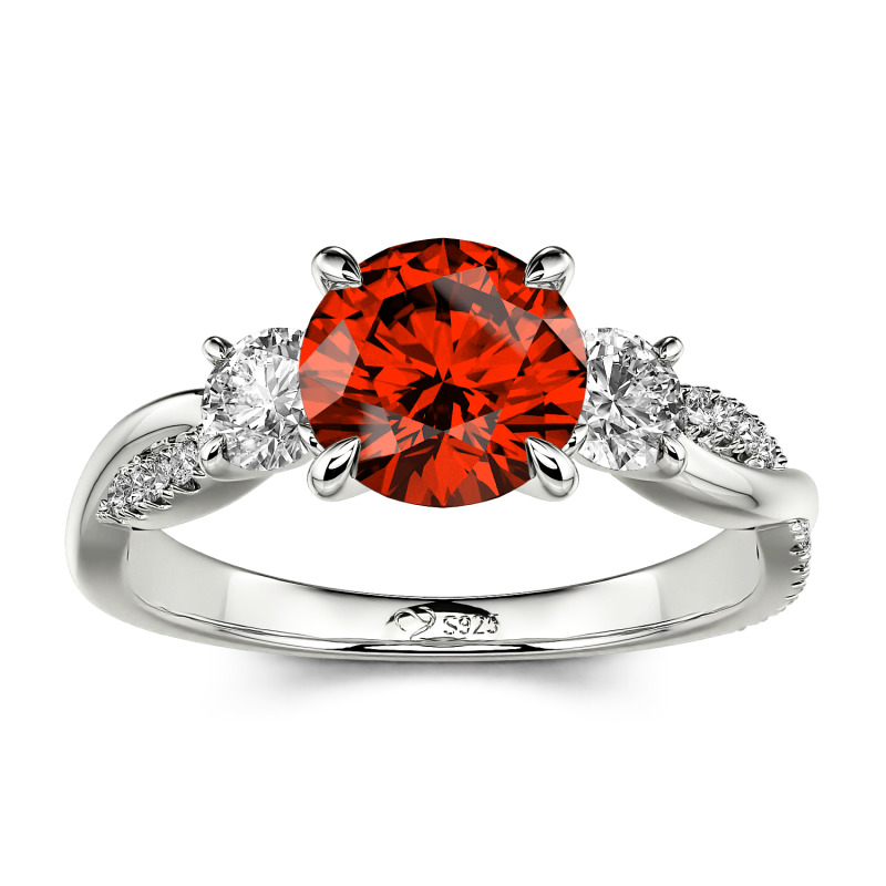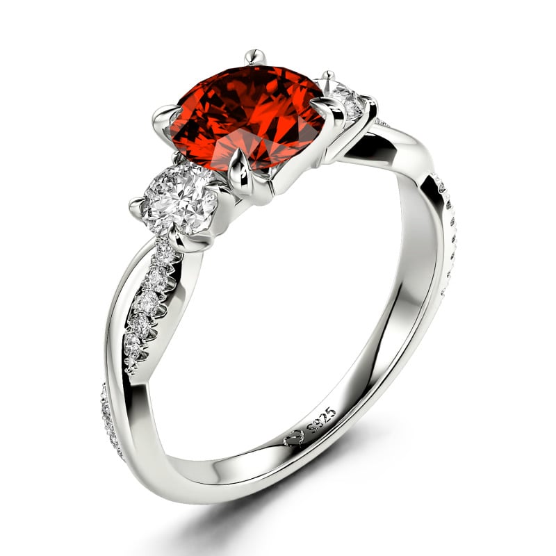 Jeulia Twist Three Stone Engagement Ring Sterling Silver Round Cut