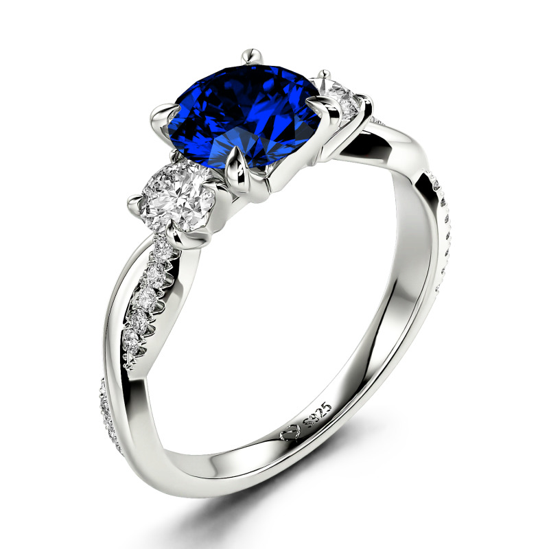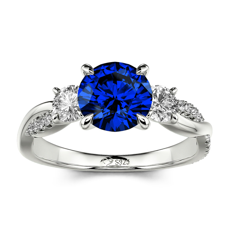 Jeulia Twist Three Stone Engagement Ring Sterling Silver Round Cut