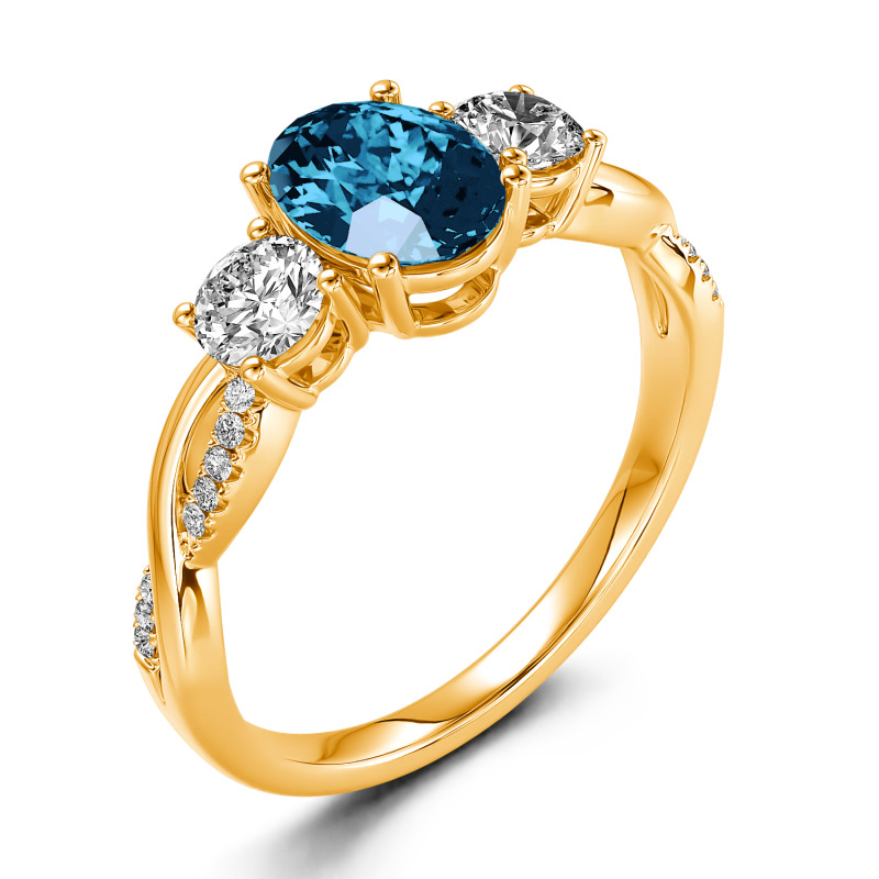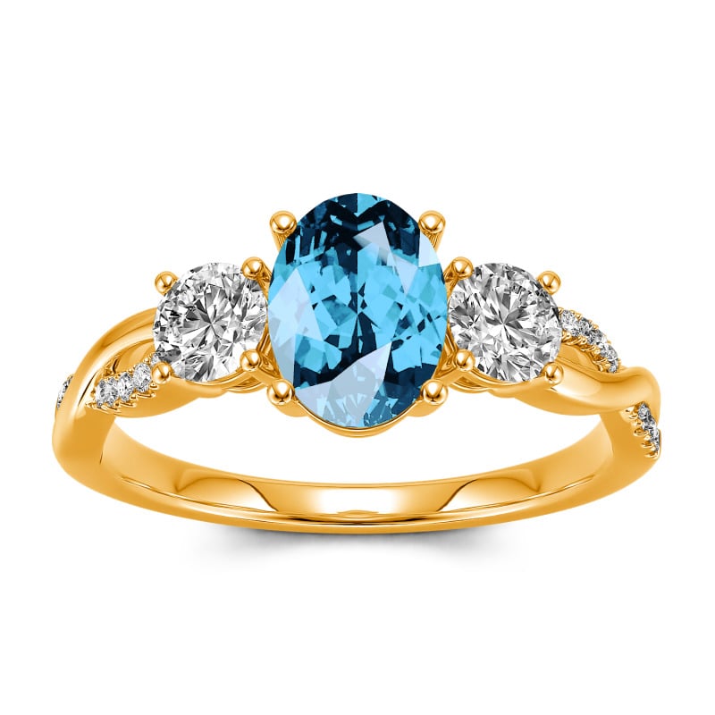 Jeulia Twist Three Stone Oval Cut Sterling Silver Ring
