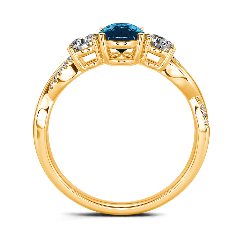 A beautiful choice, this vintage-inspired ring is certain to be adored the instant it's presented to her. Glittering in bold brilliance, this elegant design showcases a sparkling oval cut stone at the center, while two smaller stones flank the center stone for extra shimmer. The crossover shank shimmers with an artful arrangement of polished and stone-lined ribbons. Simply timeless, this design is buffed to a brilliant lustre.