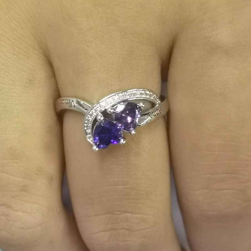Jeulia Twisted Custom Double Heart Birthstone Name Ring