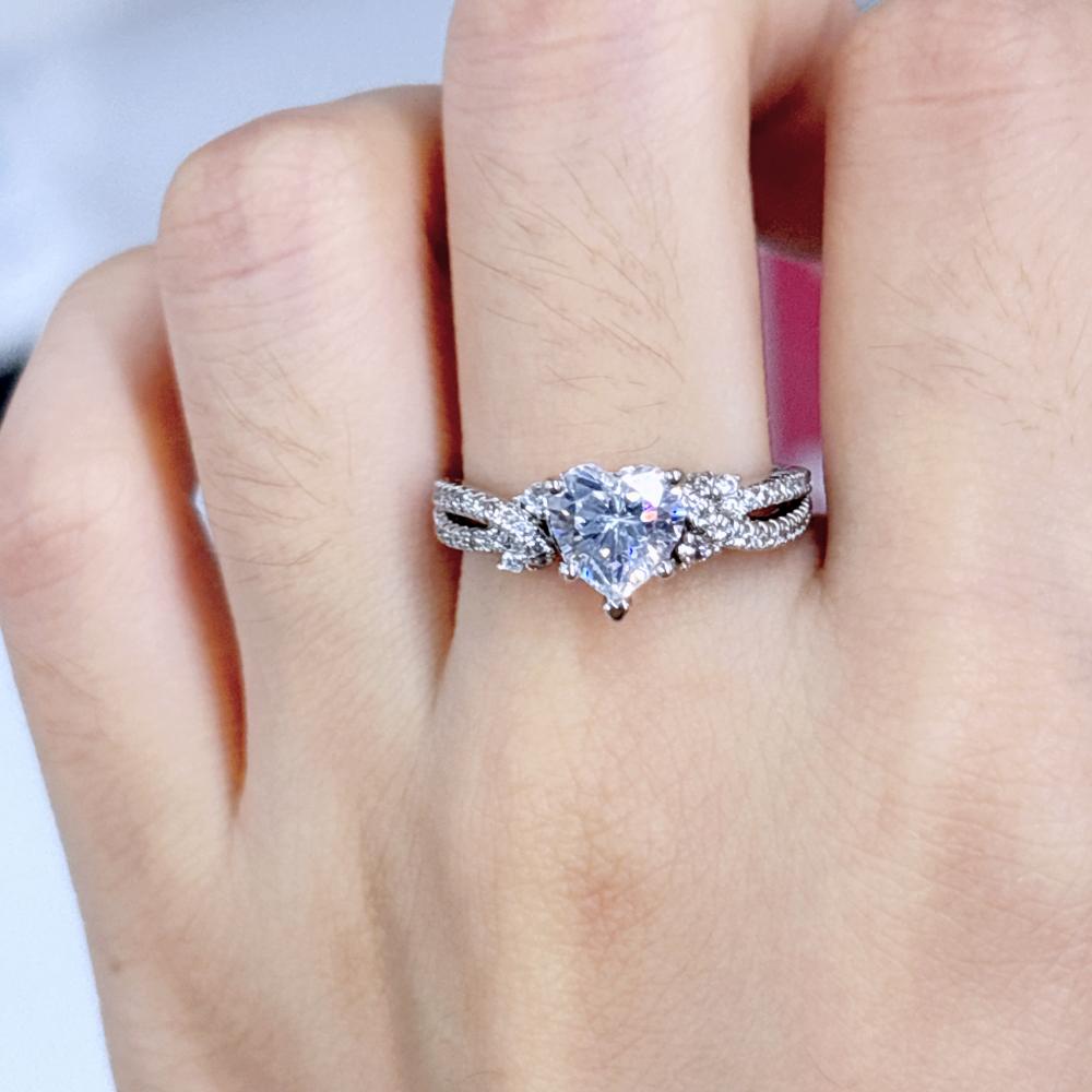Embrace the essence of love with the Jeulia twisted heart cut engagement ring. This twist ring is a timeless testament to romance, masterfully blending elegance and unique design. At the heart of the ring is a dazzling heart - cut stone, capturing and reflecting light with every movement, symbolizing the depth and passion of your love. The twisted band starts with two large round stones, creating the visual effect of a three - stone design. These stones not only boost the ring’s overall sparkle but also frame the heart - cut centerpiece beautifully, achieving a harmonious and eye - catching look. Whether you're planning a grand proposal or looking for a ring that will stand the test of time as a symbol of your commitment, this Jeulia eternity ring is an ideal choice.