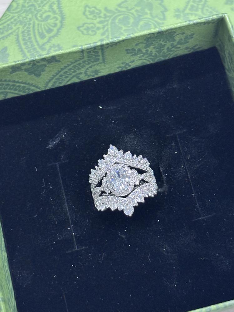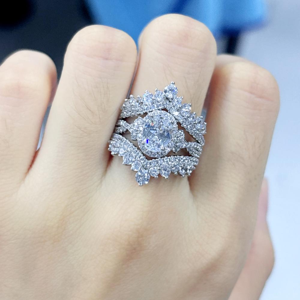 Celebrate your love with the Jeulia twisted oval halo bridal ring set. This oval cut, 2pcs bridal ring set features a dazzling oval - cut stone at its center, encircled by a double halo that amplifies its brilliance. The main ring boasts twisted band arms for a unique touch, while the symmetrical V - shaped enhancer, complements it perfectly. Blending timeless design with intricate detailing, this vintage ring set is ideal for brides. It can be worn together for a coordinated, glamorous look or interchangeably to suit different styles and moments, making it a perfect symbol of your eternal bond.